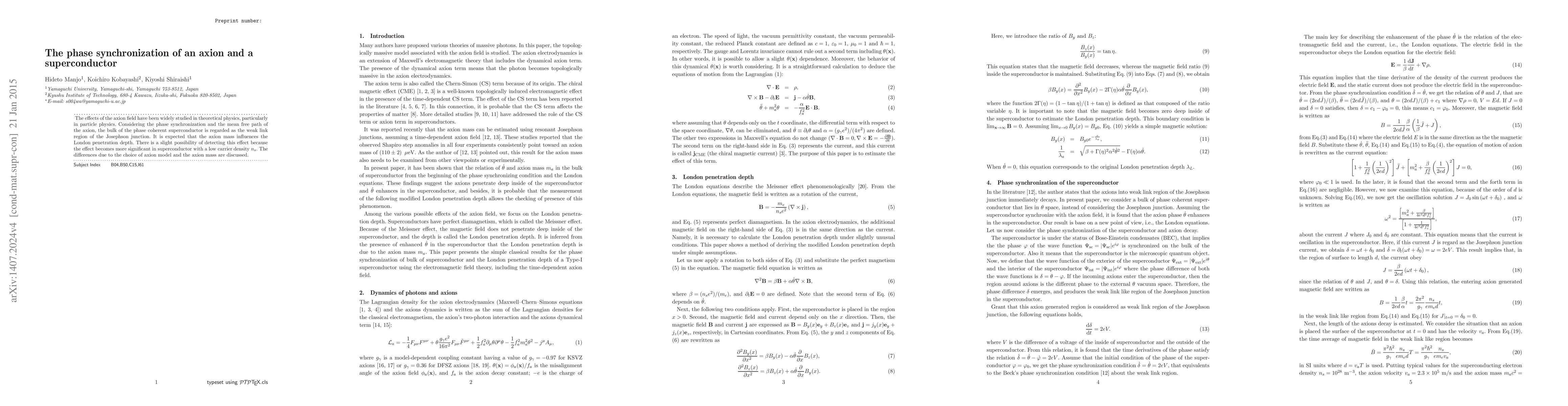 Researchers explored how axions interact with superconductors, finding that the axion's mass affects the London penetration depth in superconductors with low carrier density, offering a potential method for detection.