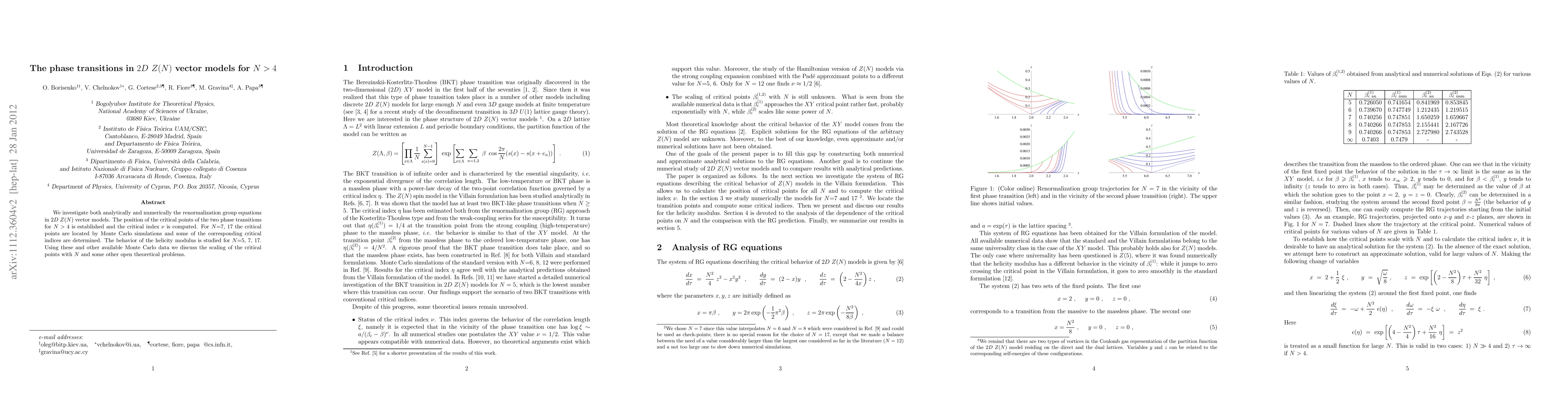 This research analytically and numerically examines 2D Z(N) vector models for N>4, pinpointing critical points of phase transitions and computing the critical index u. Monte Carlo simulations are used for N=7, 17, revealing helicity modulus behavior. The study discusses N scaling of critical points and highlights open theoretical issues.