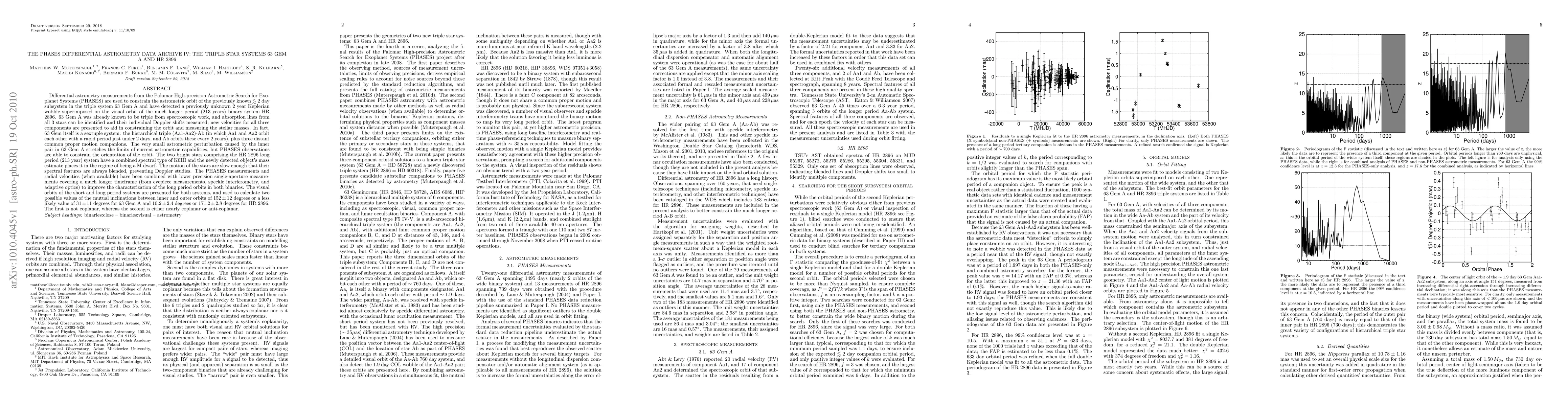 This paper uses PHASES differential astrometry to analyze the triple star systems 63 Gem A and HR 2896, revealing a previously unknown 2-year wobble in 63 Gem A and refining the long-period orbit of HR 2896. The study estimates the mass of the new component and calculates possible inclinations for both systems.