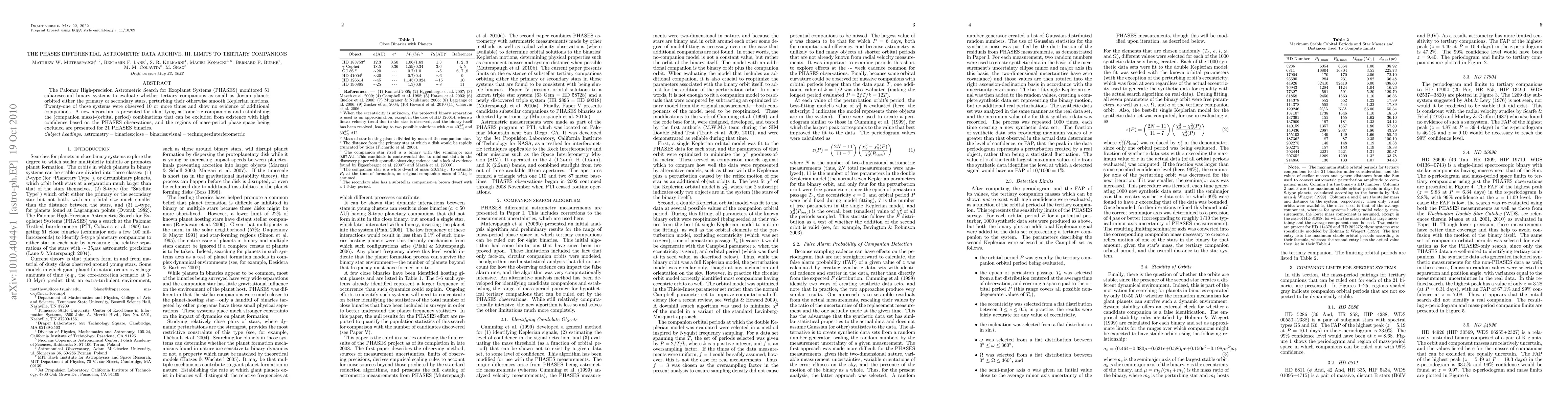 The PHASES project analyzed 51 subarcsecond binary systems to detect potential Jovian planet companions, finding no evidence of additional bodies in 21 systems observed multiple times. A new algorithm was developed to establish high-confidence limits on the existence of such companions, presenting excluded mass-period combinations for 21 binaries.