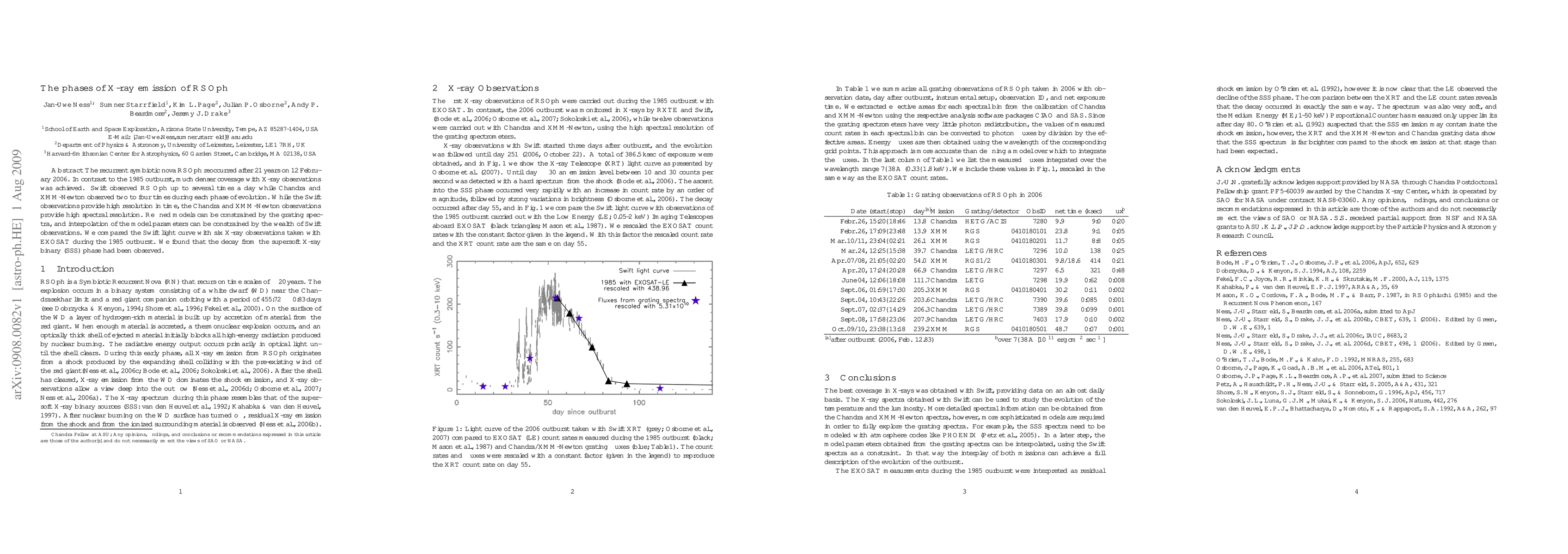 The recurrent symbiotic nova RS Oph reoccurred after 21 years on 12 February 2006. In contrast to the 1985 outburst, much denser coverage with X-ray observations was achieved. Swift observed RS Oph up to several times a day while Chandra and XMM-Newton observed two to four times during each phase of evolution. While the Swift observations provide high resolution in time, the Chandra and XMM-Newton observations provide high spectral resolution. Refined models can be constrained by the grating spectra, and interpolation of the model parameters can be constrained by the wealth of Swift observations. We compared the Swift light curve with six X-ray observations taken with \exosat\ during the 1985 outburst. We found that the decay from the supersoft X-ray binary (SSS) phase had been observed.