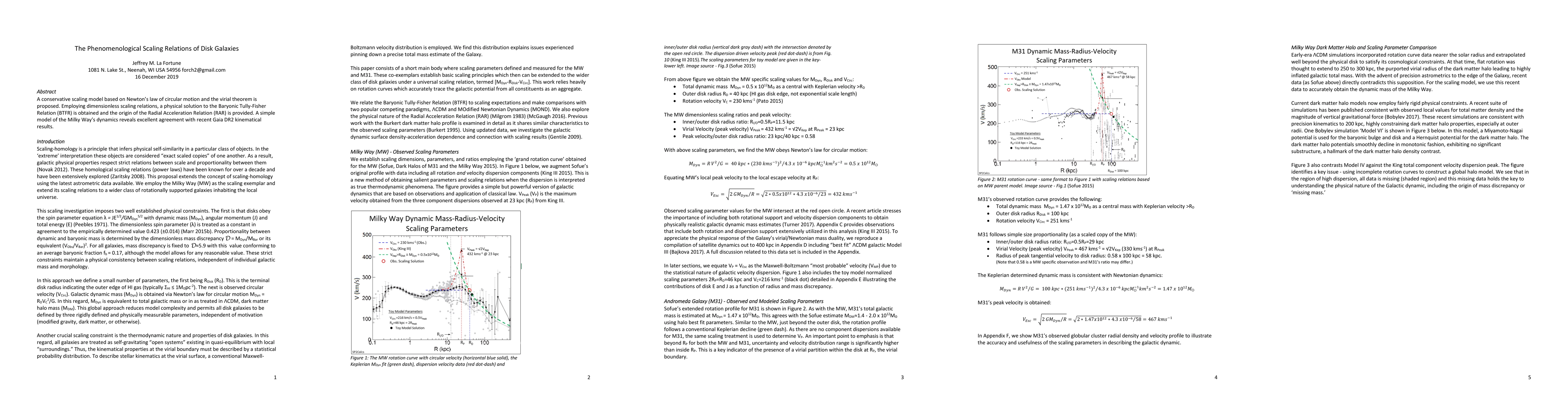 A conservative scaling model based on Newton's law of circular motion and the virial theorem is proposed. Employing dimensionless scaling relations, a physical solution to the Baryonic Tully-Fisher Relation (BTFR) is obtained and the origin of the Radial Acceleration Relation (RAR) is provided. A simple model of the Milky Way's dynamics reveals excellent agreement with recent Gaia DR2 kinematical results.