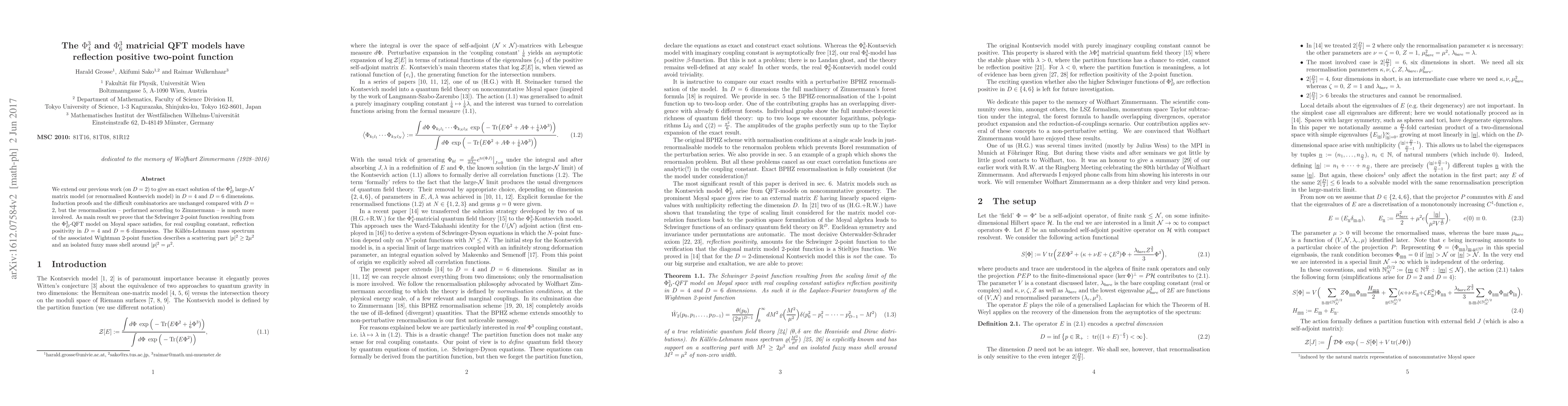 The paper presents an exact solution for the $Phi^3_D$ large-$mathcal{N}$ matrix model in $D=4$ and $D=6$ dimensions, extending previous $D=2$ work. It proves reflection positivity for the Schwinger 2-point function in these dimensions, describing a scattering part and an isolated fuzzy mass shell in the Källén-Lehmann spectrum.