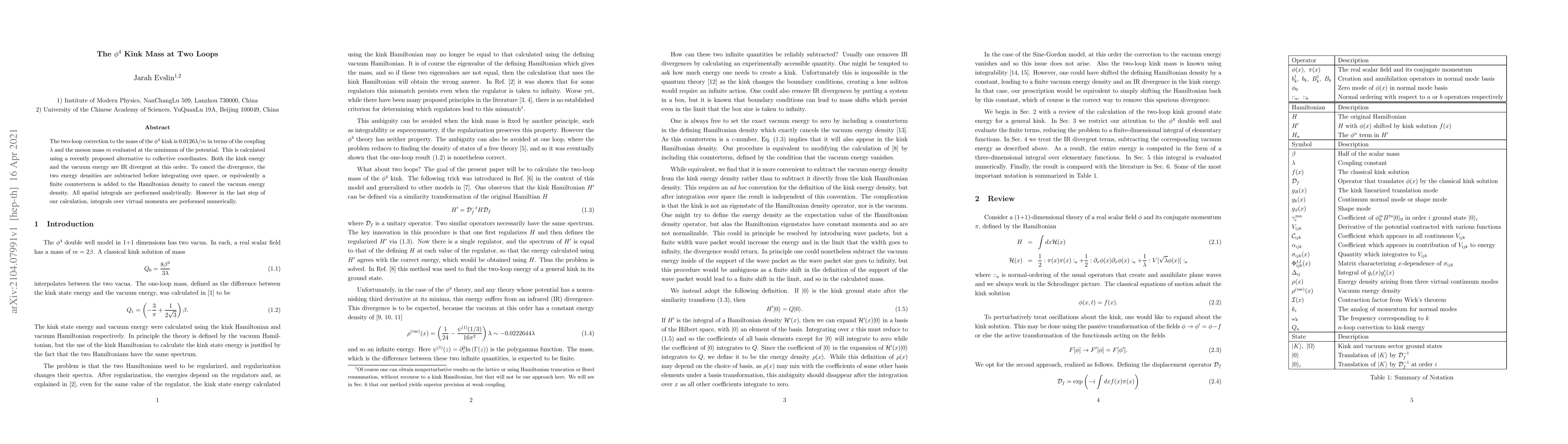 The two-loop correction to the mass of the $\phi^4$ kink is $0.0126\lambda/m$ in terms of the coupling $\lambda$ and the meson mass $m$ evaluated at the minimum of the potential. This is calculated using a recently proposed alternative to collective coordinates. Both the kink energy and the vacuum energy are IR divergent at this order. To cancel the divergence, the two energy densities are subtracted before integrating over space, or equivalently a finite counterterm is added to the Hamiltonian density to cancel the vacuum energy density. All spatial integrals are performed analytically. However in the last step of our calculation, integrals over virtual momenta are performed numerically.
