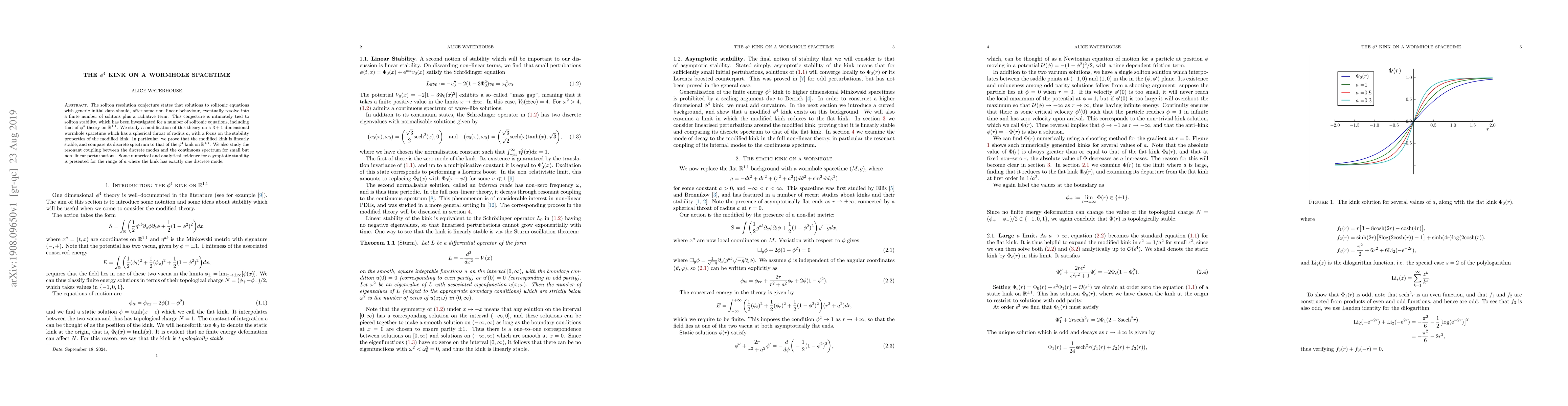 Researchers study stability of a modified $ heta^4$ kink on a wormhole spacetime, proving linear stability and comparing discrete spectrum to the standard $ heta^4$ kink.