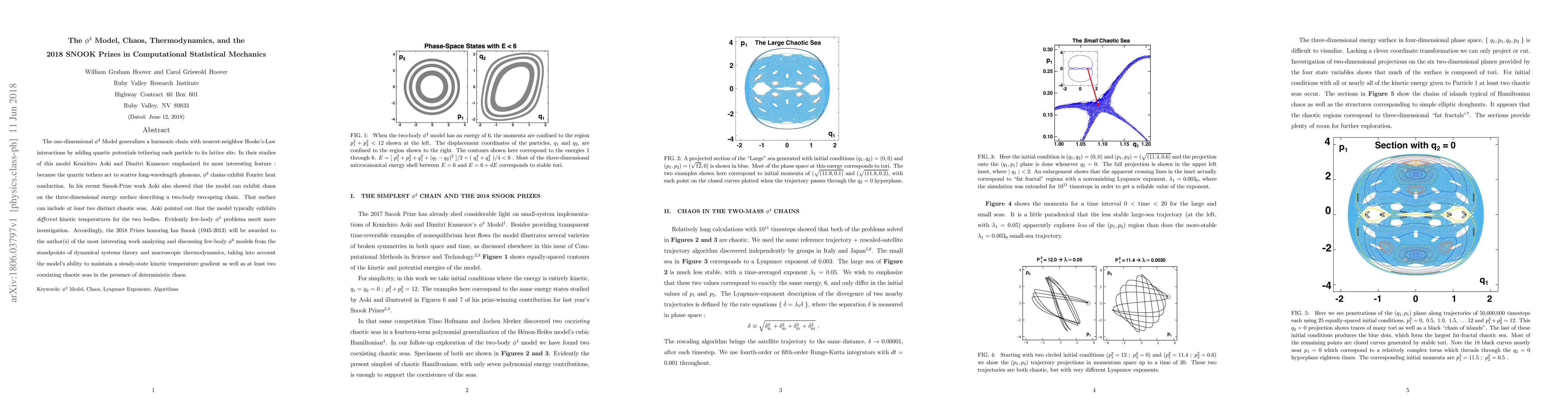 The one-dimensional $\phi^4$ Model generalizes a harmonic chain with nearest-neighbor Hooke's-Law interactions by adding quartic potentials tethering each particle to its lattice site. In their studies of this model Kenichiro Aoki and Dimitri Kusnezov emphasized its most interesting feature : because the quartic tethers act to scatter long-wavelength phonons, $\phi^4$ chains exhibit Fourier heat conduction. In his recent Snook-Prize work Aoki also showed that the model can exhibit chaos on the three-dimensional energy surface describing the two-body two-spring chain. That surface can include {\it at least two} distinct chaotic seas. Aoki pointed out that the model typically exhibits different kinetic temperatures for the two bodies. Evidently few-body $\phi^4$ problems merit more investigation. Accordingly, the 2018 Prizes honoring Ian Snook (1945-2013) will be awarded to the author(s) of the most interesting work analyzing and discussing few-body $\phi^4$ models from the standpoints of dynamical systems theory and macroscopic thermodynamics, taking into account the model's ability to maintain a steady-state kinetic temperature gradient as well as at least two coexisting chaotic seas in the presence of deterministic chaos.