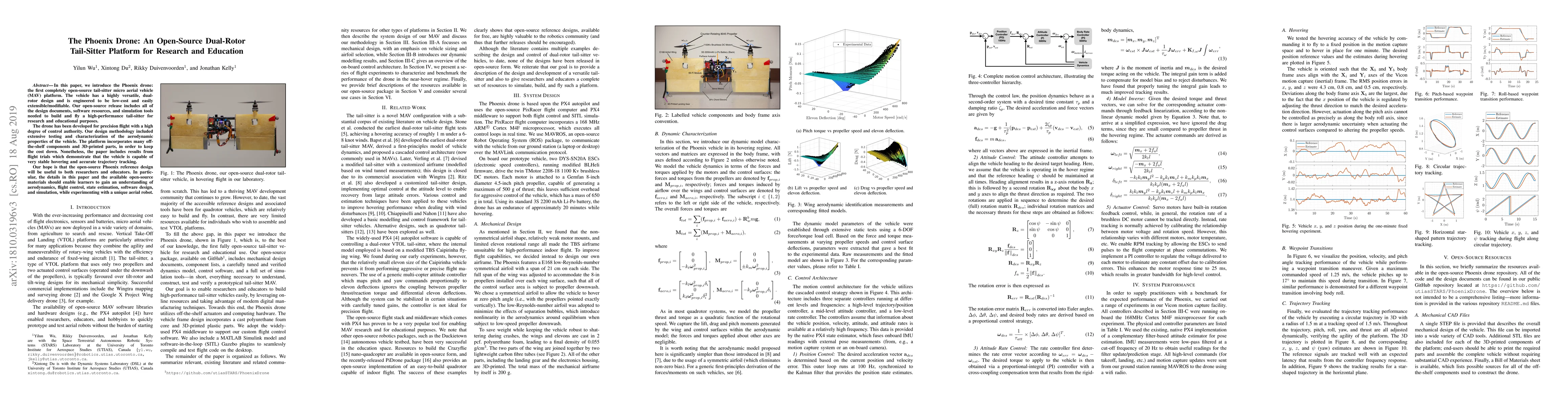 The Phoenix drone is an open-source dual-rotor tail-sitter MAV designed for research and education, featuring low-cost, modular components and extensive open-source documentation for building and flying. Flight trials demonstrate its stability and precision, aiming to facilitate learning in aerodynamics and flight control.