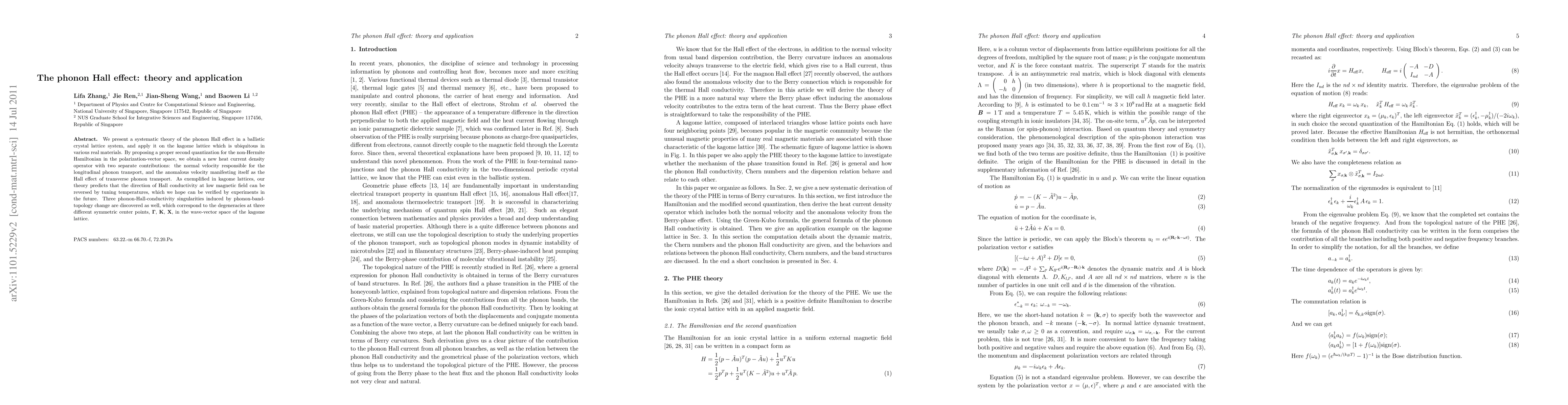 This paper develops a theoretical framework for the phonon Hall effect in ballistic crystal lattices, specifically applied to the kagome lattice. It introduces a new heat current density operator revealing both longitudinal and anomalous phonon transport, predicting reversible Hall conductivity directionality with temperature changes and identifying three phonon-Hall-conductivity singularities linked to phonon-band topology.