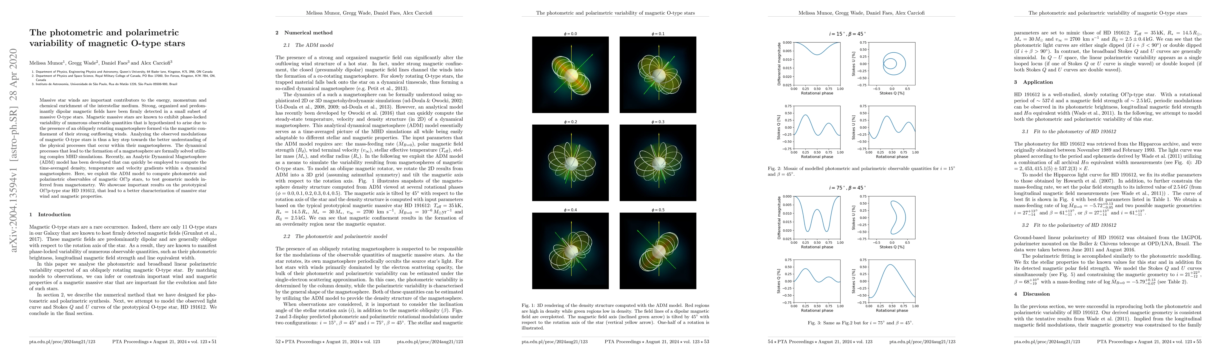 Massive star winds are important contributors to the energy, momentum and chemical enrichment of the interstellar medium. Strong, organized and predominantly dipolar magnetic fields have been firmly detected in a small subset of massive O-type stars. Magnetic massive stars are known to exhibit phase-locked variability of numerous observable quantities that is hypothesized to arise due to the presence of an obliquely rotating magnetosphere formed via the magnetic confinement of their strong outflowing winds. Analyzing the observed modulations of magnetic O-type stars is thus a key step towards the better understanding of the physical processes that occur within their magnetospheres. The dynamical processes that lead to the formation of a magnetosphere are formally solved utilizing complex MHD simulations. Recently, an Analytic Dynamical Magnetosphere (ADM) model has been developed that can quickly be employed to compute the time-averaged density, temperature and velocity gradients within a dynamical magnetosphere. Here, we exploit the ADM model to compute photometric and polarimetric observables of magnetic Of?p stars, to test geometric models inferred from magnetometry. We showcase important results on the prototypical Of?p-type star HD 191612, that lead to a better characterization of massive star wind and magnetic properties.