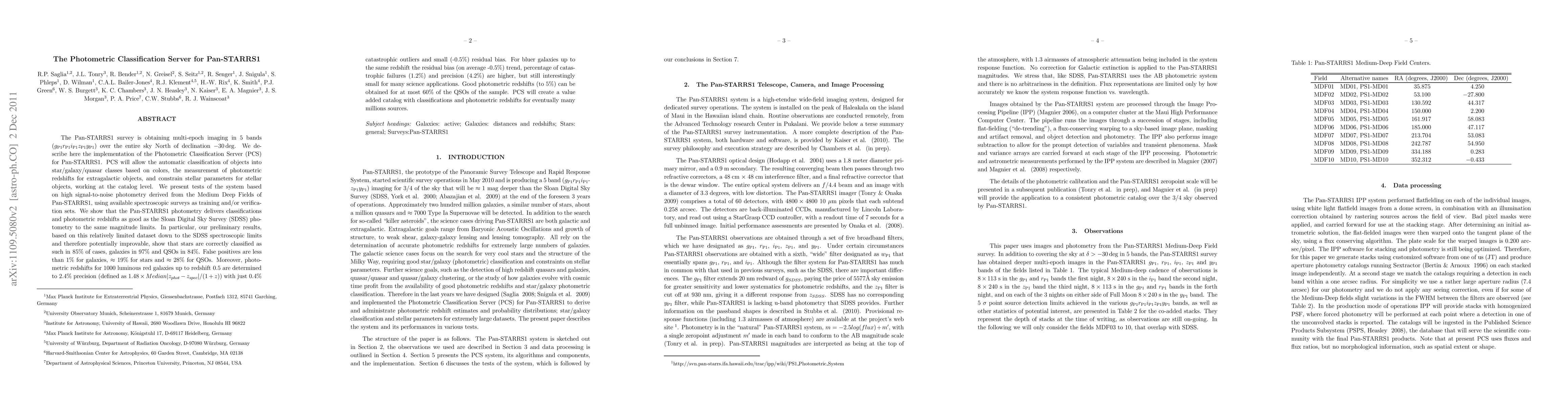 The Photometric Classification Server (PCS) for Pan-STARRS1 automates the classification of objects into stars, galaxies, and quasars based on multi-band photometry, achieving classification accuracies comparable to the SDSS. Preliminary results show high accuracy in classifying galaxies and quasars, with potential for improvement.