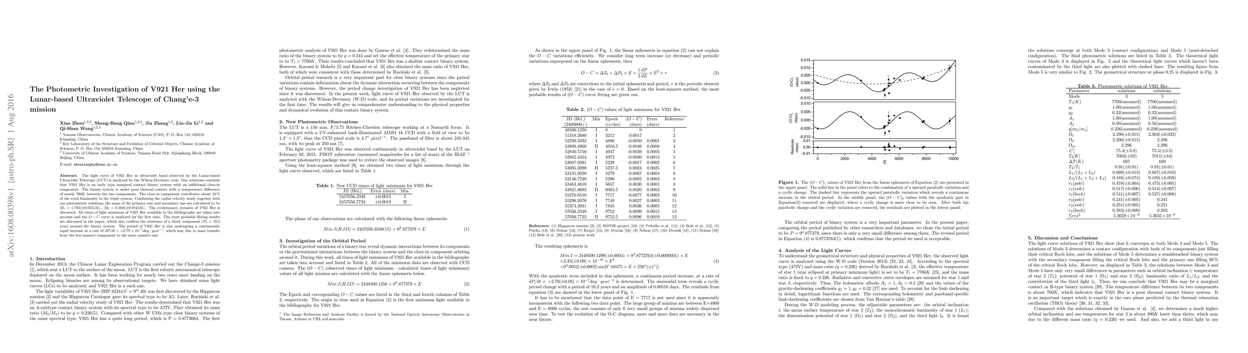 This study analyzes the ultraviolet light curve of V921 Her using the Lunar-based Ultraviolet Telescope of Chang'e-3, revealing it to be an early type marginal contact binary with an additional close-in component contributing 19% to the total luminosity. The system shows a temperature difference of nearly 700K and is undergoing a rapid period increase, likely due to mass transfer.