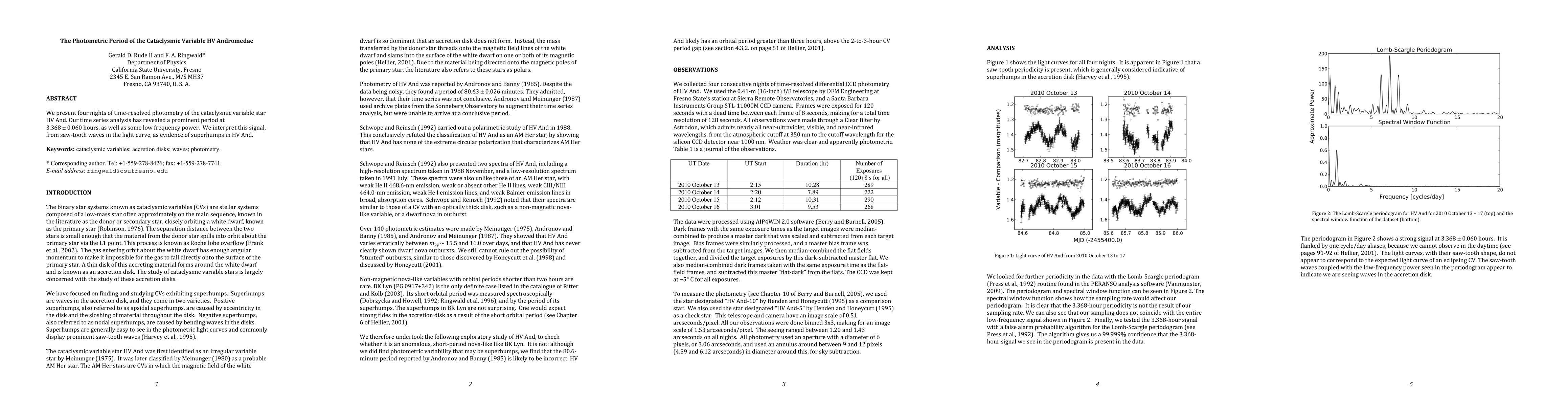 Researchers found a prominent period of 3.368 hours in the light curve of HV Andromedae, indicating superhumps, which suggests unusual behavior in the cataclysmic variable star.