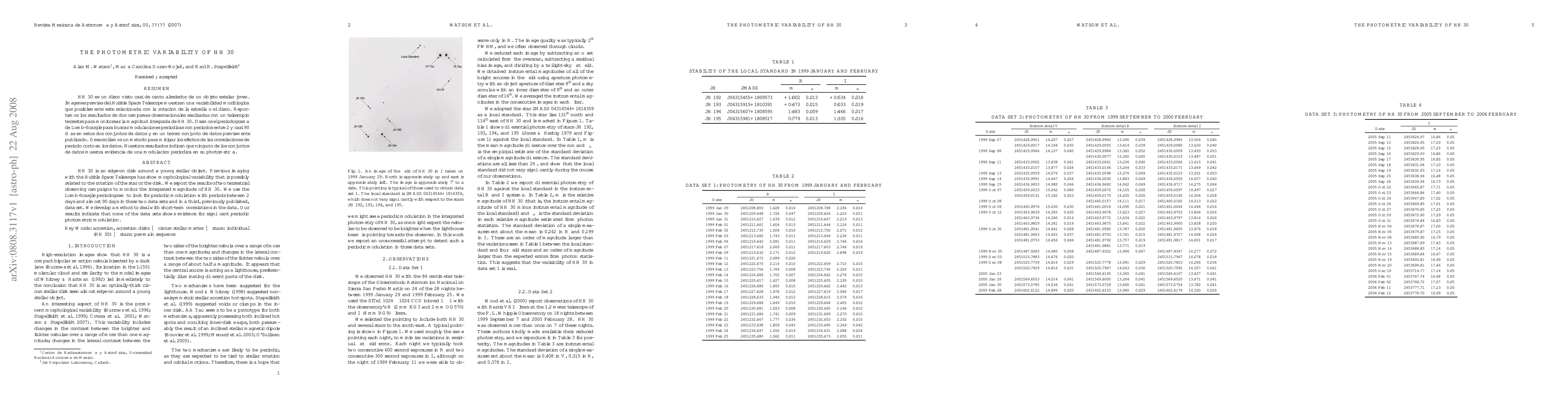 HH 30 is an edge-on disk around a young stellar object. Previous imaging with the Hubble Space Telescope has show morphological variability that is possibly related to the rotation of the star or the disk. We report the results of two terrestrial observing campaigns to monitor the integrated magnitude of HH 30. We use the Lomb-Scargle periodogram to look for periodic modulation with periods between 2 days and almost 90 days in these two data sets and in a third, previously published, data set. We develop a method to deal with short-term correlations in the data. Our results indicate that none of the data sets shows evidence for significant periodic photometric modulation.