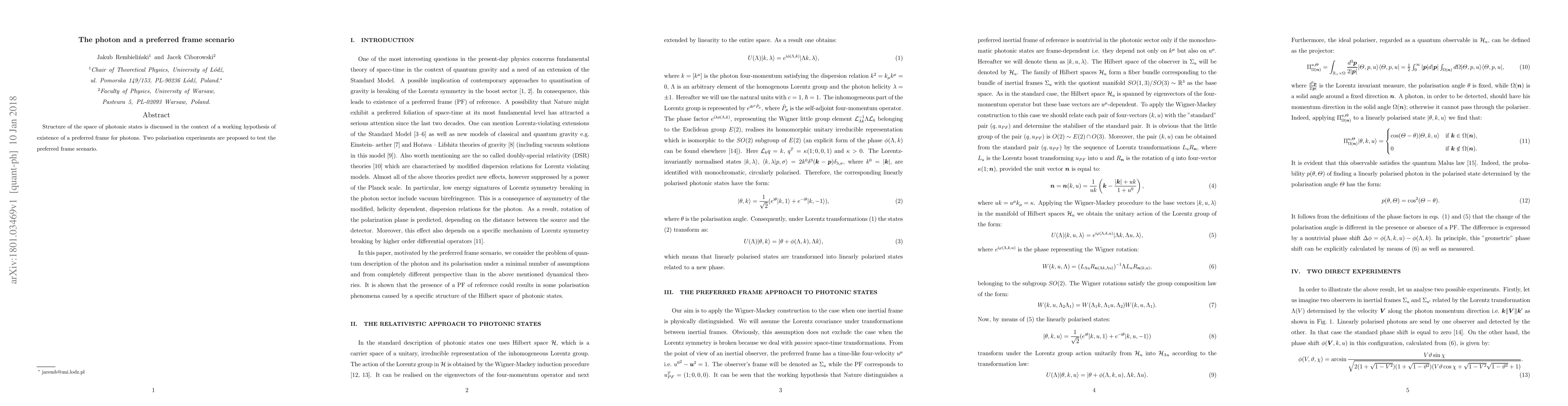 Summary: This paper explores the implications of a preferred frame for photons and proposes two polarization experiments to test this hypothesis, examining the structure of photonic states in this framework.