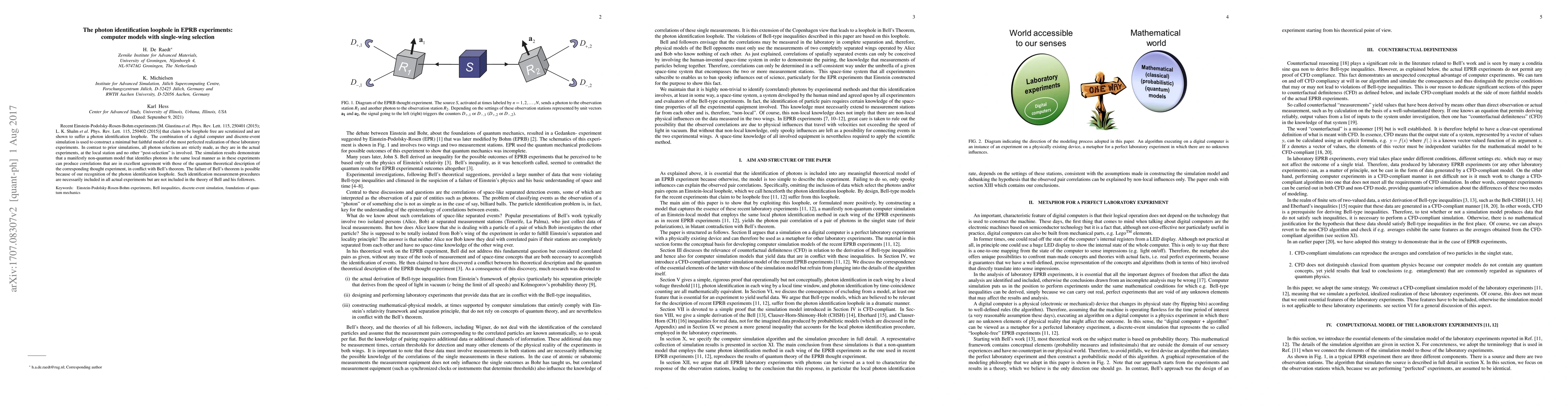 Recent Einstein-Podolsky-Rosen-Bohm experiments [M. Giustina et al. Phys. Rev. Lett. 115, 250401 (2015); L. K. Shalm et al. Phys. Rev. Lett. 115, 250402 (2015)] that claim to be loophole free are scrutinized and are shown to suffer a photon identification loophole. The combination of a digital computer and discrete-event simulation is used to construct a minimal but faithful model of the most perfected realization of these laboratory experiments. In contrast to prior simulations, all photon selections are strictly made, as they are in the actual experiments, at the local station and no other "post-selection" is involved. The simulation results demonstrate that a manifestly non-quantum model that identifies photons in the same local manner as in these experiments can produce correlations that are in excellent agreement with those of the quantum theoretical description of the corresponding thought experiment, in conflict with Bell's theorem. The failure of Bell's theorem is possible because of our recognition of the photon identification loophole. Such identification measurement-procedures are necessarily included in all actual experiments but are not included in the theory of Bell and his followers.