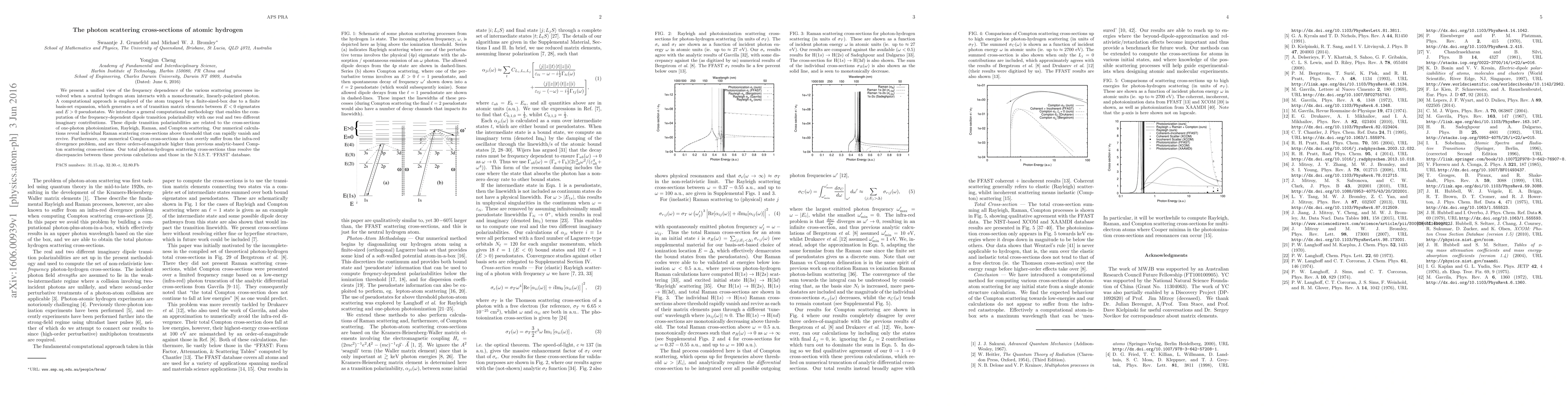This paper presents a computational methodology for determining the frequency-dependent scattering cross-sections of atomic hydrogen, including one-photon photoionization, Rayleigh, Raman, and Compton scattering. The study resolves discrepancies in previous calculations and shows that Raman scattering cross-sections can rapidly vanish and revive, while Compton cross-sections are significantly higher.