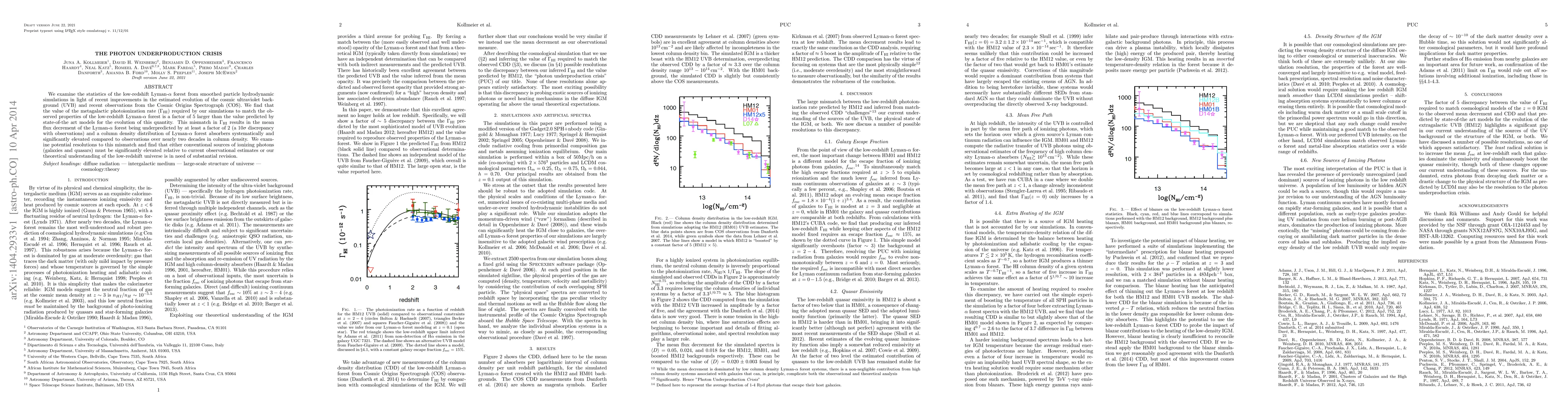 We examine the statistics of the low-redshift Lyman-alpha forest from smoothed particle hydrodynamic simulations in light of recent improvements in the estimated evolution of the cosmic ultraviolet background (UVB) and recent observations from the Cosmic Origins Spectrograph (COS). We find that the value of the metagalactic photoionization rate required by our simulations to match the observed properties of the low-redshift Lyman-alpha forest is a factor of 5 larger than the value predicted by state-of-the art models for the evolution of this quantity. This mismatch results in the mean flux decrement of the Lyman-alpha forest being underpredicted by at least a factor of 2 (a 10-sigma discrepancy with observations) and a column density distribution of Lyman-alpha forest absorbers systematically and significantly elevated compared to observations over nearly two decades in column density. We examine potential resolutions to this mismatch and find that either conventional sources of ionizing photons (galaxies and quasars) must be significantly elevated relative to current observational estimates or our theoretical understanding of the low-redshift universe is in need of substantial revision.
