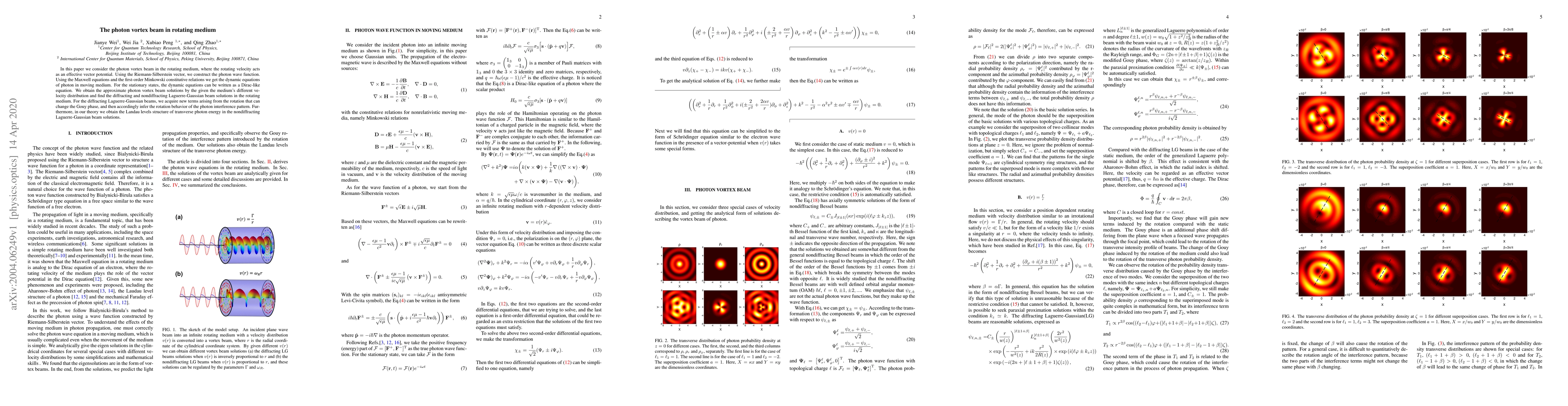 This paper investigates photon vortex beams in rotating media, modeling the dynamics using the Riemann-Silberstein vector and Maxwell's equations. It derives a Dirac-like equation for stationary states and explores the diffraction and nondiffraction properties of Laguerre-Gaussian beam solutions, revealing new rotational effects on the Gouy phase and photon interference patterns.