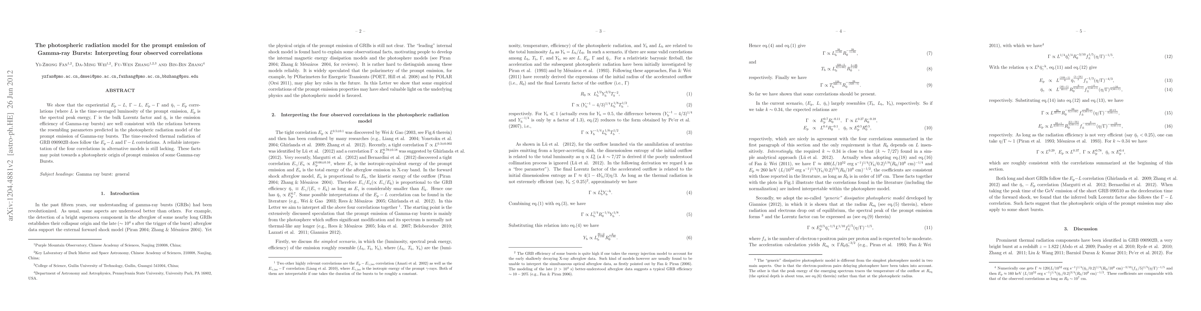 This paper demonstrates that observed correlations in Gamma-ray Bursts (GRBs) align with predictions from the photospheric radiation model, suggesting a photospheric origin for the prompt emission. The study highlights the consistency of these correlations and the lack of alternative model explanations.