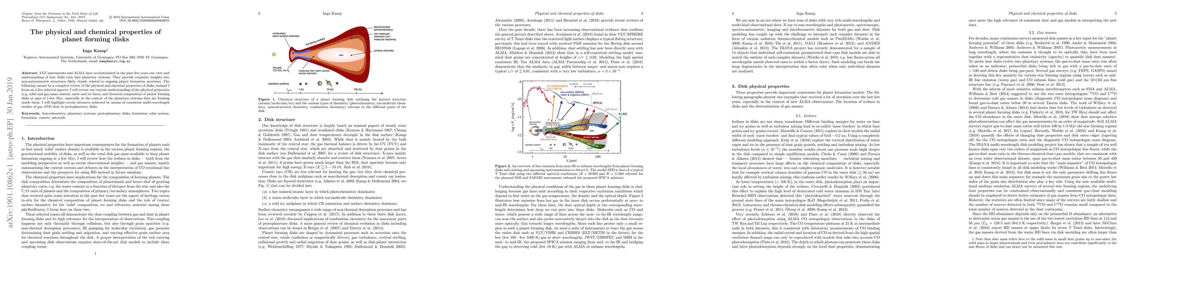 VLT instruments and ALMA have revolutionized in the past five years our view and understanding of how disks turn into planetary systems. They provide exquisite insights into non-axisymmetric structures likely closely related to ongoing planet formation processes. The following cannot be a complete review of the physical and chemical properties of disks; instead I focus on a few selected aspects. I will review our current understanding of the physical properties (e.g. solid and gas mass content, snow and ice lines) and chemical composition of planet forming disks at ages of 1-few Myr, especially in the context of the planetary systems that are forming inside them. I will highlight recent advances achieved by means of consistent multi-wavelength studies of gas AND dust in protoplanetary disks.