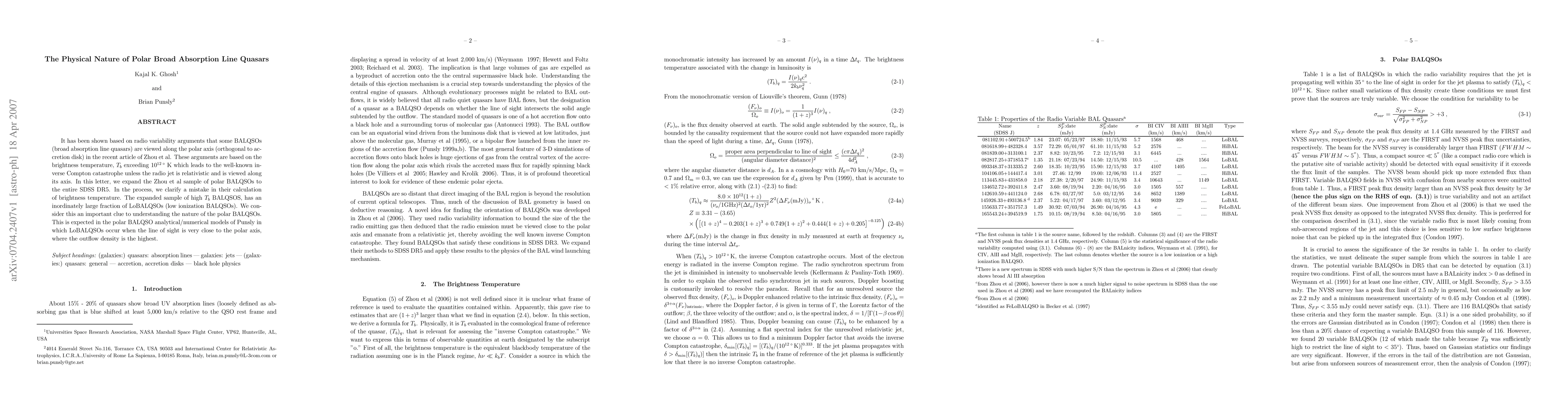 It has been shown based on radio variability arguments that some BALQSOs (broad absorption line quasars) are viewed along the polar axis (orthogonal to accretion disk) in the recent article of Zhou et al. These arguments are based on the brightness temperature, $T_{b}$ exceeding $10^{12} ^{\circ}$ K which leads to the well-known inverse Compton catastrophe unless the radio jet is relativistic and is viewed along its axis. In this letter, we expand the Zhou et al sample of polar BALQSOs to the entire SDSS DR5. In the process, we clarify a mistake in their calculation of brightness temperature. The expanded sample of high $T_{b}$ BALQSOS, has an inordinately large fraction of LoBALQSOs (low ionization BALQSOs). We consider this an important clue to understanding the nature of the polar BALQSOs. This is expected in the polar BALQSO analytical/numerical models of Punsly in which LoBALQSOs occur when the line of sight is very close to the polar axis, where the outflow density is the highest.