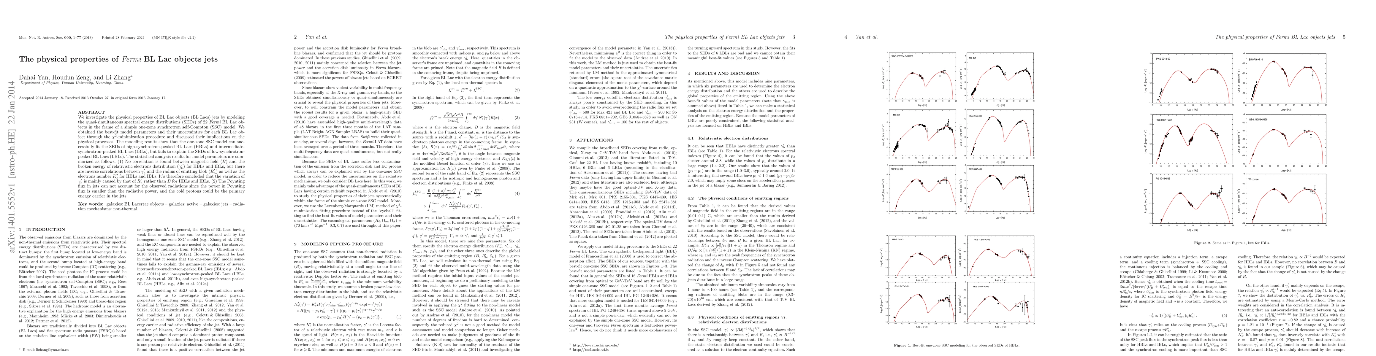 This study models the spectral energy distributions of 22 Fermi BL Lac objects using a one-zone synchrotron self-Compton model, finding that it fits high- and intermediate-synchrotron-peaked BL Lacs but not low-synchrotron-peaked ones. It concludes that the variation in broken energy of relativistic electrons is primarily due to the emitting blob radius, and that cold protons, rather than Poynting flux, are the main energy carriers in the jets.