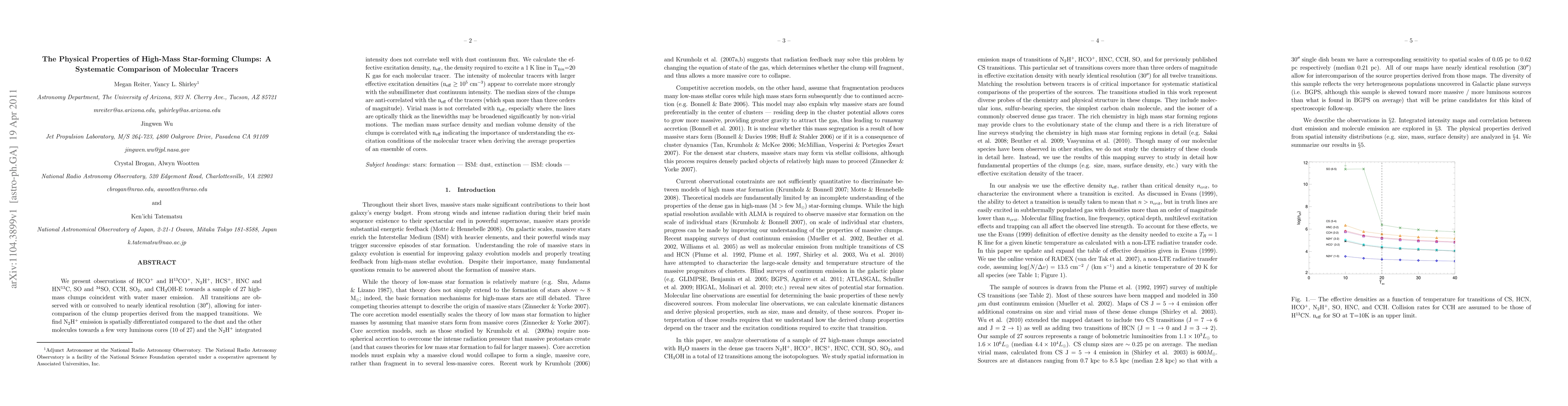 We present observations of HCO+ and H^13CO+, N2H+, HCS+, HCN and HN^13C, SO and ^34SO, CCH, SO_2, and CH_3OH-E towards a sample of 27 high-mass clumps coincident with water maser emission. All transitions are observed with or convolved to nearly identical resolution (30"), allowing for inter-comparison of the clump properties derived from the mapped transitions. We find N2H+ emission is spatially differentiated compared to the dust and the other molecules towards a few very luminous cores (10 of 27) and the N2H+ integrated intensity does not correlate well with dust continuum flux. We calculate the effective excitation density, n_eff, the density required to excite a 1 K line in T_kin=20 K gas for each molecular tracer. The intensity of molecular tracers with larger effective excitation densities (n_eff > 10^5 cm^-3) appear to correlate more strongly with the submillimeter dust continuum intensity. The median sizes of the clumps are anti-correlated with the n_eff of the tracers (which span more than three orders of magnitude). Virial mass is not correlated with n_eff, especially where the lines are optically thick as the linewidths may be broadened significantly by non-virial motions. The median mass surface density and median volume density of the clumps is correlated with n_eff indicating the importance of understanding the excitation conditions of the molecular tracer when deriving the average properties of an ensemble of cores.