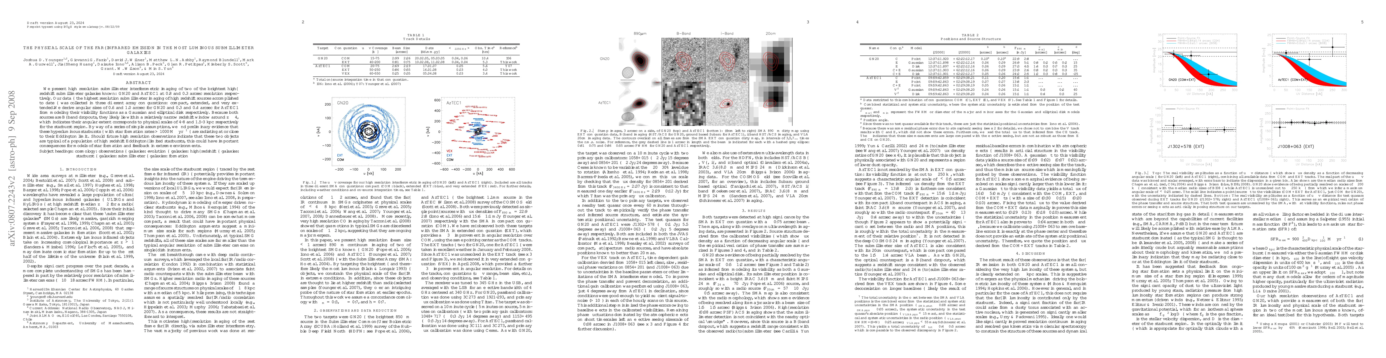 This study uses high-resolution submillimeter imaging to determine the physical scales of two luminous high-redshift submillimeter galaxies, GN20 and AzTEC1, revealing angular sizes corresponding to physical scales of 4-8 kpc and 1.5-3 kpc respectively. The findings suggest these hyperluminous starbursts may be operating near their Eddington limit, potentially impacting models of star formation and feedback in extreme environments.