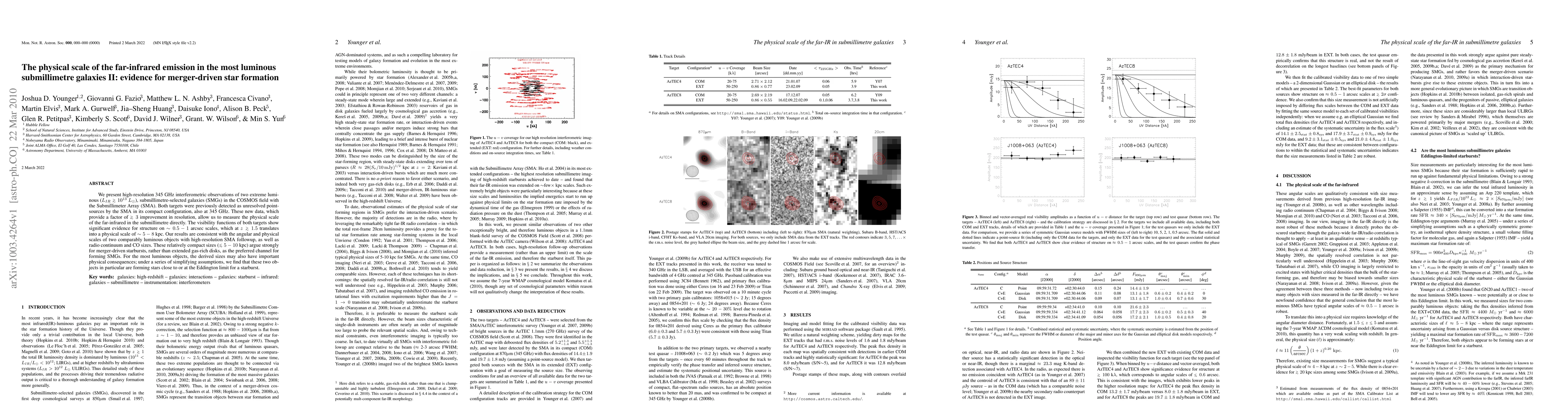 We present high-resolution 345 GHz interferometric observations of two extreme luminous (L_{IR}>10^{13} L_sun), submillimetre-selected galaxies (SMGs) in the COSMOS field with the Submillimeter Array (SMA). Both targets were previously detected as unresolved point-sources by the SMA in its compact configuration, also at 345 GHz. These new data, which provide a factor of ~3 improvement in resolution, allow us to measure the physical scale of the far-infrared in the submillimetre directly. The visibility functions of both targets show significant evidence for structure on 0.5-1 arcsec scales, which at z=1.5 translates into a physical scale of 5-8 kpc. Our results are consistent with the angular and physical scales of two comparably luminous objects with high-resolution SMA followup, as well as radio continuum and CO sizes. These relatively compact sizes (<5-10 kpc) argue strongly for merger-driven starbursts, rather than extended gas-rich disks, as the preferred channel for forming SMGs. For the most luminous objects, the derived sizes may also have important physical consequences; under a series of simplifying assumptions, we find that these two objects in particular are forming stars close to or at the Eddington limit for a starburst.