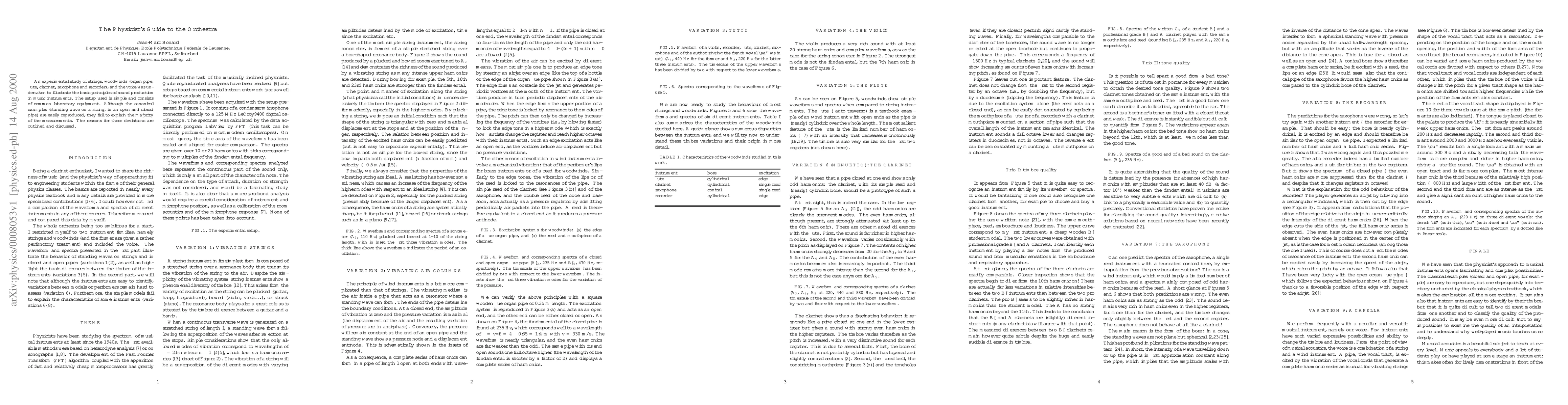 This research experimentally explores sound production in various orchestral instruments using simple lab equipment, revealing that while basic principles like standing waves can be demonstrated, they don't explain most measurements, and deviations are discussed.