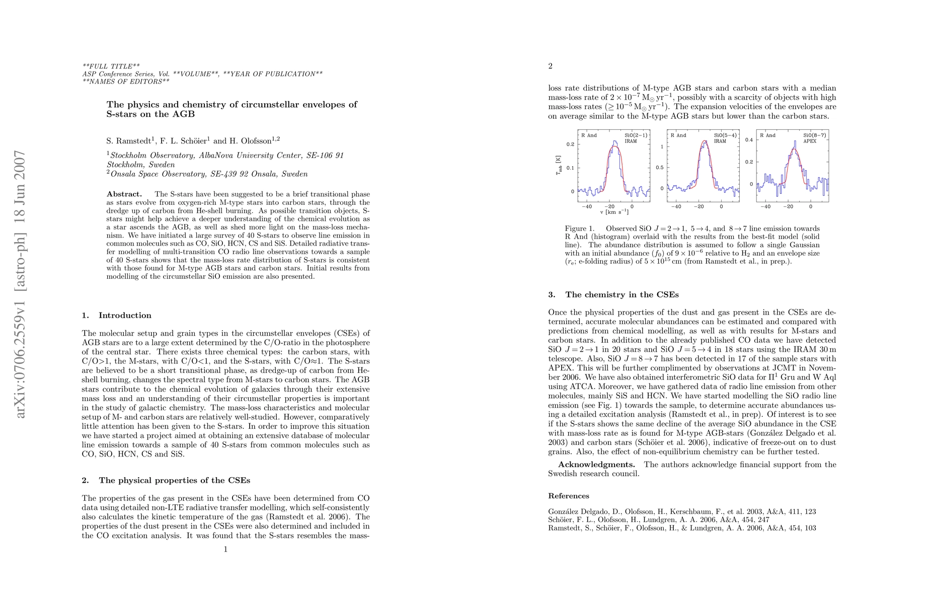 The S-stars have been suggested to be a brief transitional phase as stars evolve from oxygen-rich M-type stars into carbon stars, through the dredge up of carbon from He-shell burning. As possible transition objects, S-stars might help achieve a deeper understanding of the chemical evolution as a star ascends the AGB, as well as shed more light on the mass-loss mechanism. We have initiated a large survey of 40 S-stars to observe line emission in common molecules such as CO, SiO, HCN, CS and SiS. Detailed radiative transfer modelling of multi-transition CO radio line observations towards a sample of 40 S-stars shows that the mass-loss rate distribution of S-stars is consistent with those found for M-type AGB stars and carbon stars. Initial results from modelling of the circumstellar SiO emission are also presented.