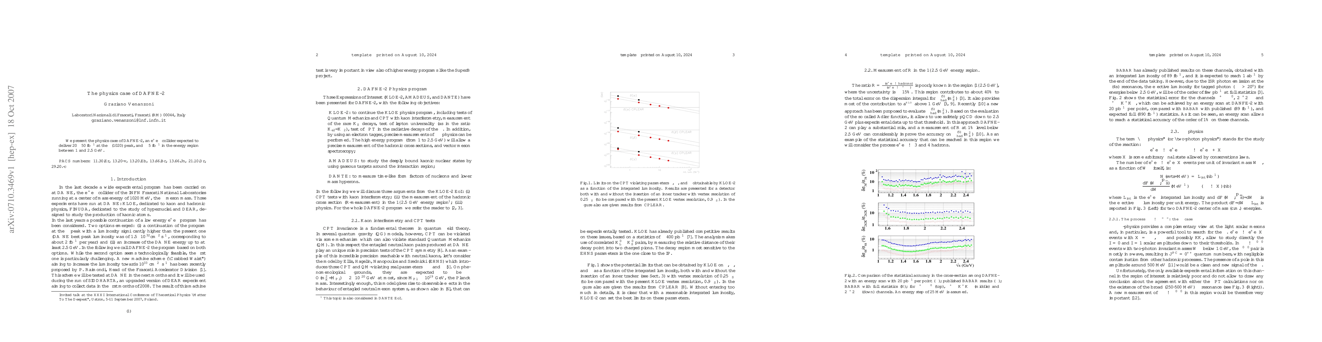 Summary: DAFNE-2 is an $e^+e^-$ collider designed to deliver significant data at the $\phi(1020)$ peak and in the energy range of 1-2.5 GeV, aiming to enhance our understanding of particle physics through detailed experimental studies.