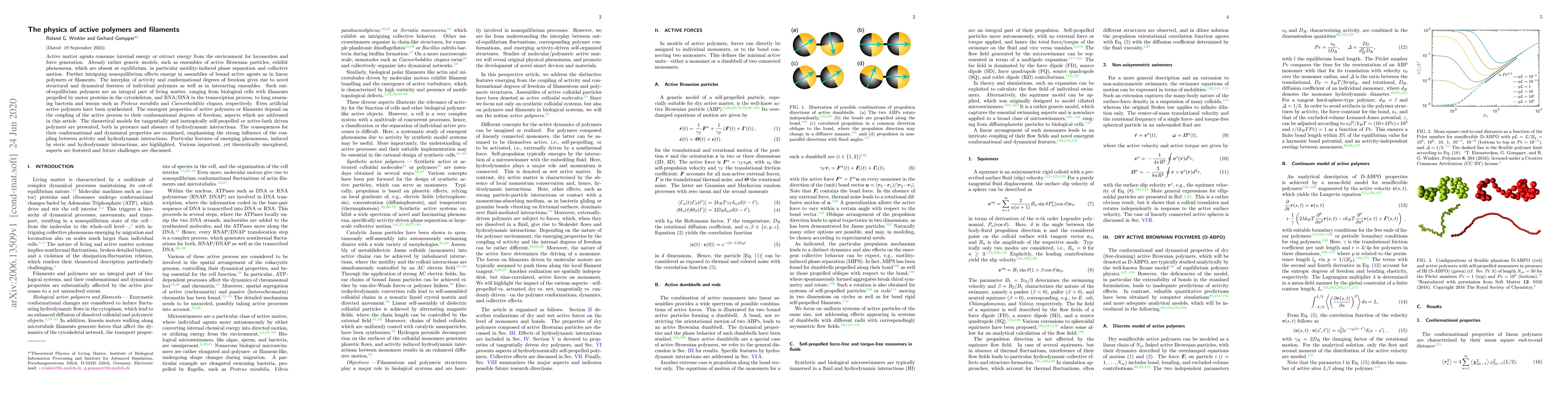 This paper explores the physics of active polymers and filaments, focusing on how their activity and conformational degrees of freedom interact, leading to novel structural and dynamical features. It examines theoretical models of self-propelled polymers and discusses the impact of coupling activity with hydrodynamic interactions on their emergent properties.