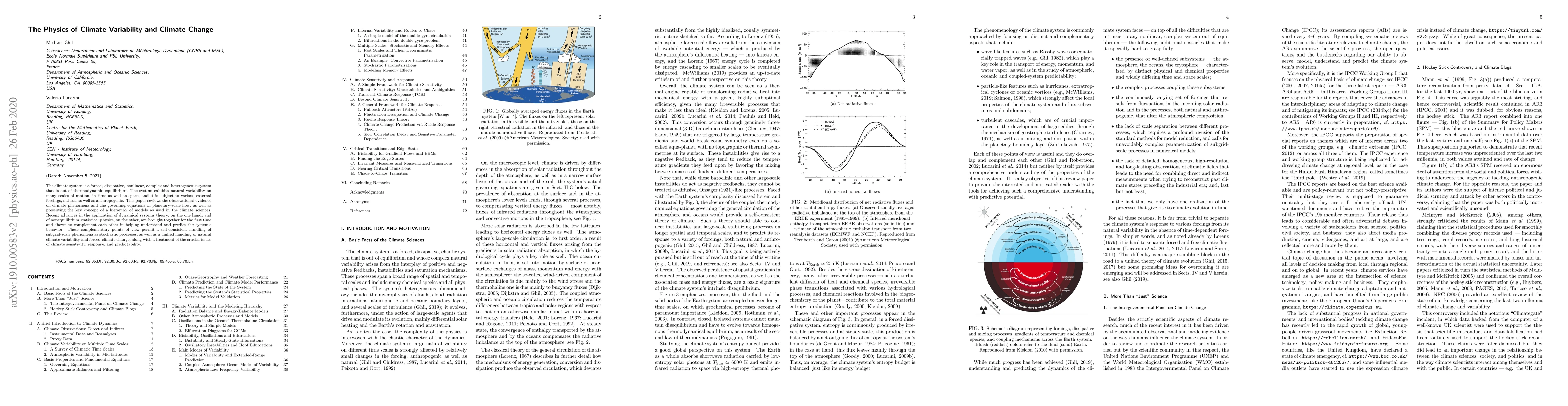 This paper reviews observational evidence and governing equations of planetary-scale climate flows, integrating advances in dynamical systems theory and nonequilibrium statistical physics to understand and predict climate variability and change, addressing climate sensitivity and predictability.