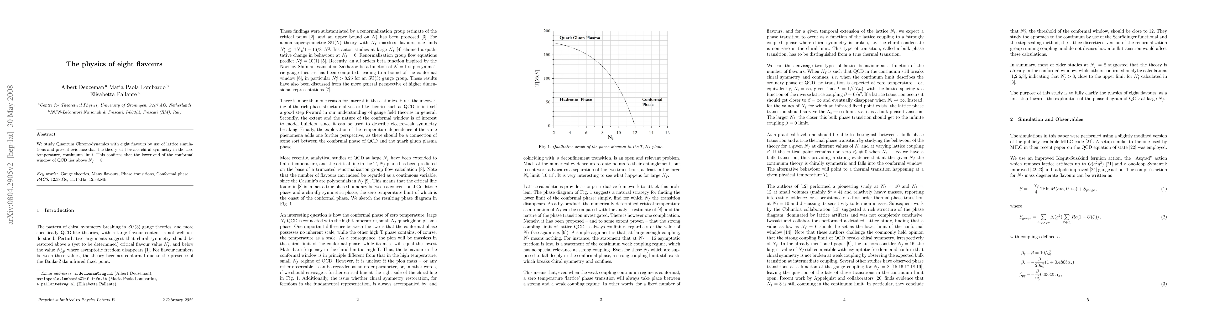 We study Quantum Chromodynamics with eight flavours by use of lattice simulations and present evidence that the theory still breaks chiral symmetry in the zero temperature, continuum limit. This confirms that the lower end of the conformal window of QCD lies above Nf = 8.