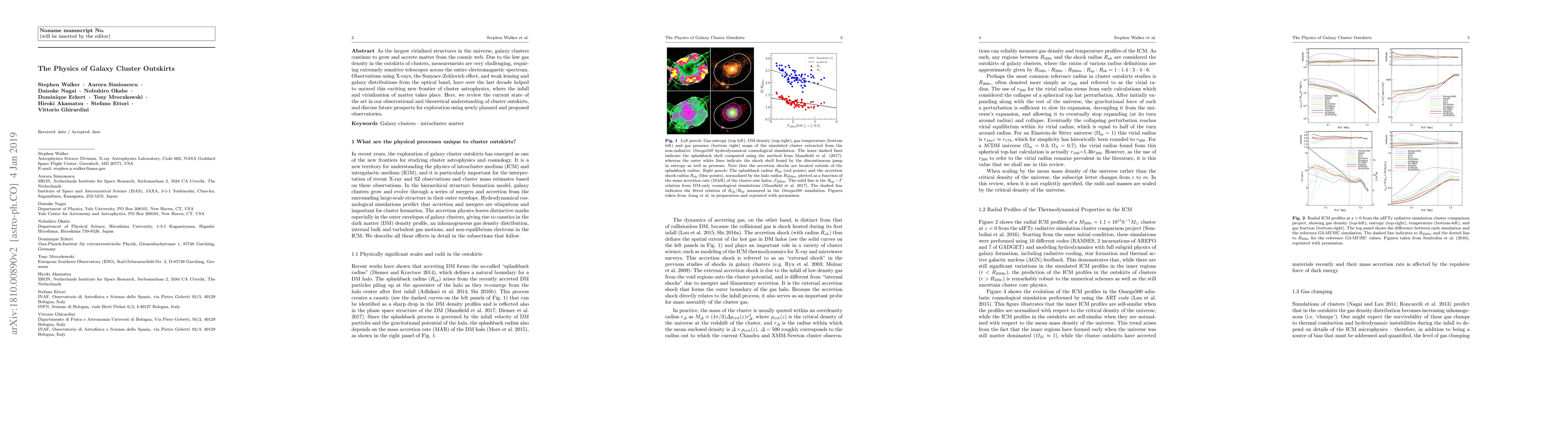 As the largest virialized structures in the universe, galaxy clusters continue to grow and accrete matter from the cosmic web. Due to the low gas density in the outskirts of clusters, measurements are very challenging, requiring extremely sensitive telescopes across the entire electromagnetic spectrum. Observations using X-rays, the Sunyaev-Zeldovich effect, and weak lensing and galaxy distributions from the optical band, have over the last decade helped to unravel this exciting new frontier of cluster astrophysics, where the infall and virialization of matter takes place. Here, we review the current state of the art in our observational and theoretical understanding of cluster outskirts, and discuss future prospects for exploration using newly planned and proposed observatories.