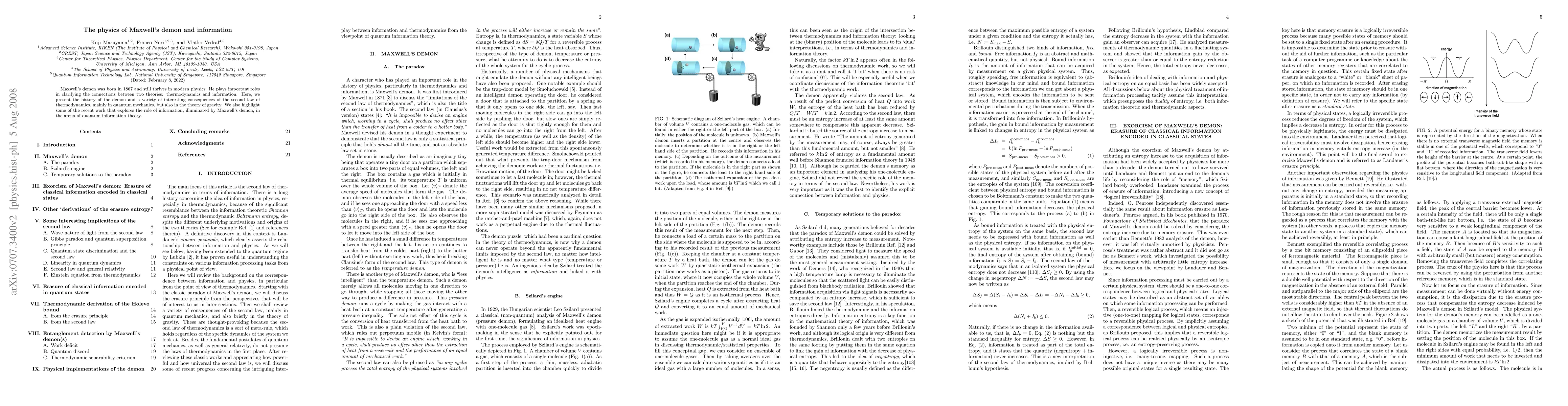 Summary: This paper traces the historical significance of Maxwell's demon in linking thermodynamics and information theory, particularly exploring its implications in quantum mechanics and gravity, while highlighting recent advancements in quantum information theory.