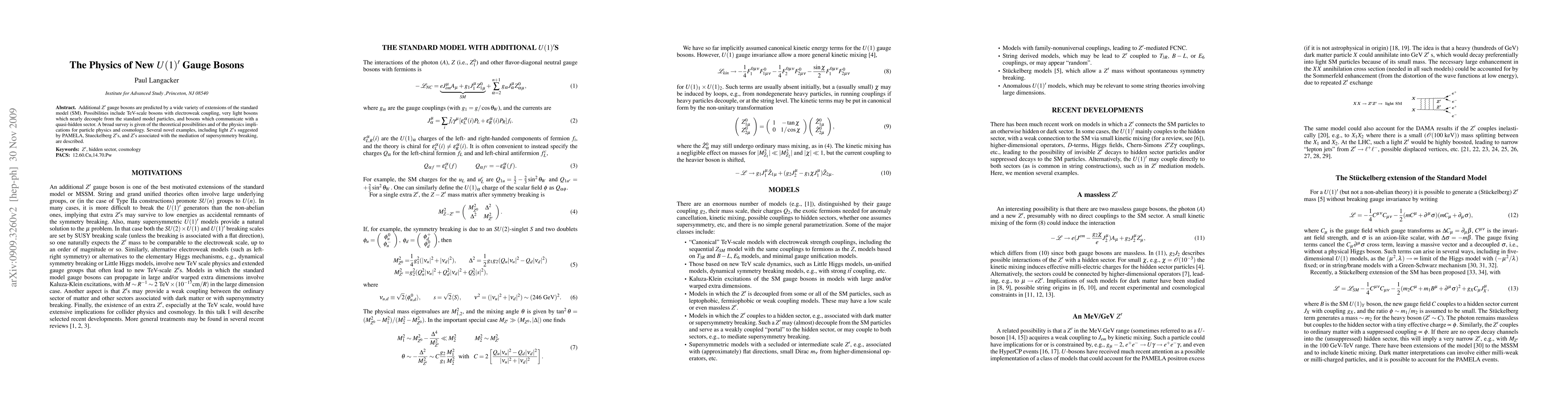 This paper reviews theoretical possibilities for additional U(1)' gauge bosons beyond the Standard Model, discussing their implications for particle physics and cosmology. It includes examples like TeV-scale bosons, light Z's, Stueckelberg Z's, and those related to supersymmetry breaking.