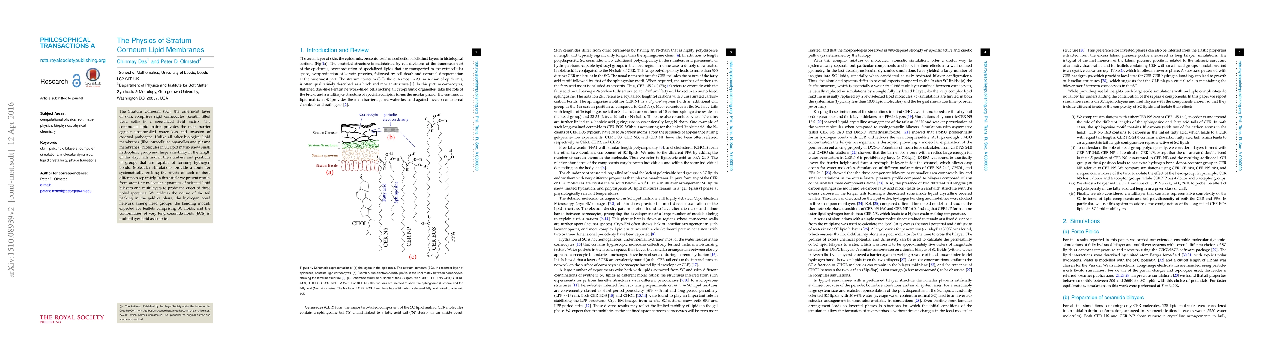 The Stratum Corneum (SC), the outermost layer of skin, comprises rigid corneocytes (keratin filled dead cells) in a specialized lipid matrix. The continuous lipid matrix provides the main barrier against uncontrolled water loss and invasion of external pathogens. Unlike all other biological lipid membranes (like intracellular organelles and plasma membranes), molecules in SC lipid matrix show small hydrophilic group and large variability in the length of the alkyl tails and in the numbers and positions of groups that are capable of forming hydrogen bonds. Molecular simulations provide a route for systematically probing the effects of each of these differences separately. In this article we present results from atomistic molecular dynamics of selected lipid bilayers and multilayers to probe the effect of these polydispersities. We address the nature of the tail packing in the gel-like phase, the hydrogen bond network among head groups, the bending moduli expected for leaflets comprising SC lipids, and the conformation of very long ceramide lipids (EOS) in multibilayer lipid assemblies.