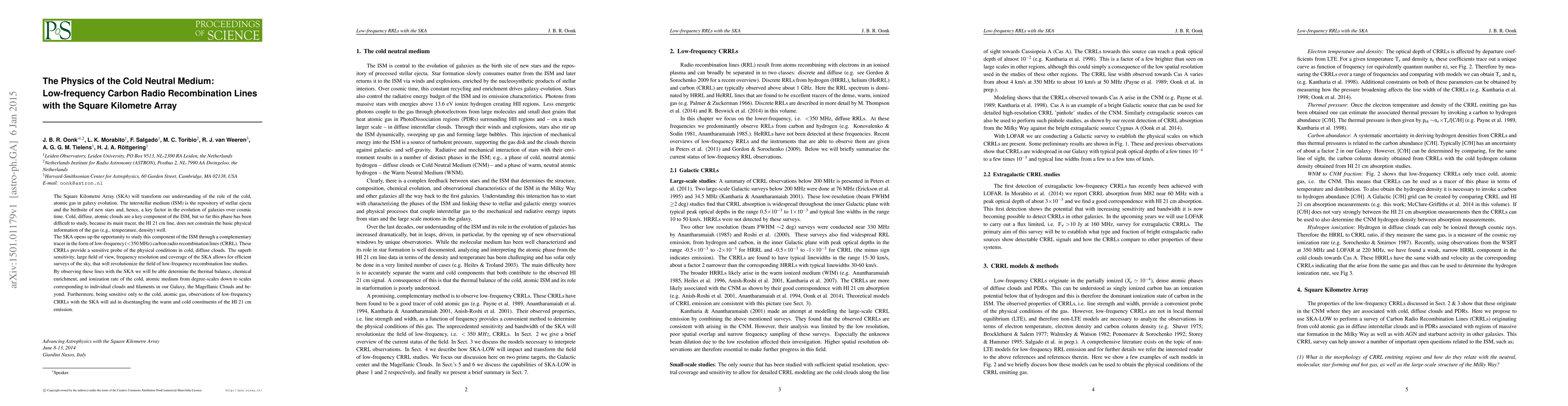 The Square Kilometre Array (SKA) will transform our understanding of the role of the cold, atomic gas in galaxy evolution. The interstellar medium (ISM) is the repository of stellar ejecta and the birthsite of new stars and, hence, a key factor in the evolution of galaxies over cosmic time. Cold, diffuse, atomic clouds are a key component of the ISM, but so far this phase has been difficult to study, because its main tracer, the HI 21 cm line, does not constrain the basic physical information of the gas (e.g., temperature, density) well. The SKA opens up the opportunity to study this component of the ISM through a complementary tracer in the form of low-frequency (<350 MHz) carbon radio recombination lines (CRRL). These CRRLs provide a sensitive probe of the physical conditions in cold, diffuse clouds. The superb sensitivity, large field of view, frequency resolution and coverage of the SKA allows for efficient surveys of the sky, that will revolutionize the field of low-frequency recombination line studies. By observing these lines with the SKA we will be able determine the thermal balance, chemical enrichment, and ionization rate of the cold, atomic medium from degree-scales down to scales corresponding to individual clouds and filaments in our Galaxy, the Magellanic Clouds and beyond. Furthermore, being sensitive only to the cold, atomic gas, observations of low-frequency CRRLs with the SKA will aid in disentangling the warm and cold constituents of the HI 21 cm emission.