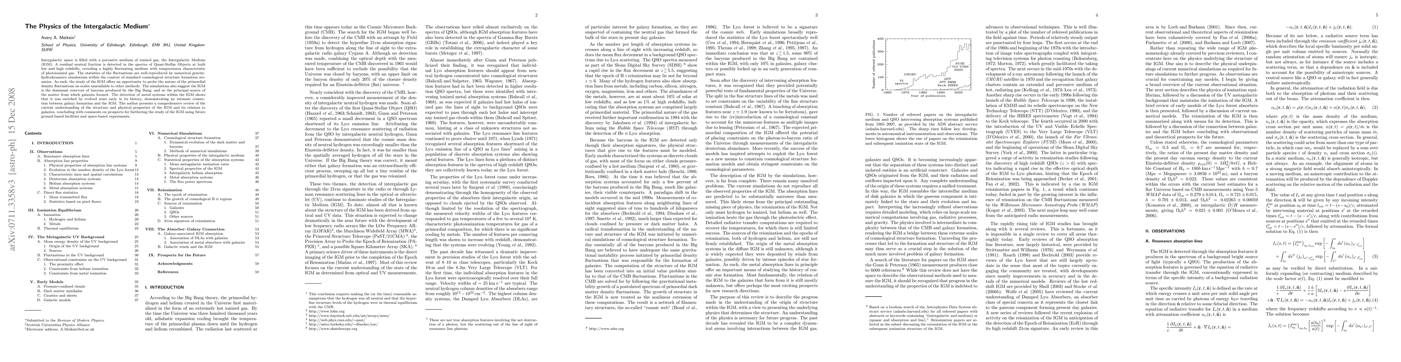 This paper reviews the structure and physical properties of the Intergalactic Medium (IGM), highlighting its role in probing primordial density fluctuations and its connection to galaxy formation. It emphasizes the IGM's status as a dominant baryon reservoir and enriched by evolved stars, and discusses future observational prospects.