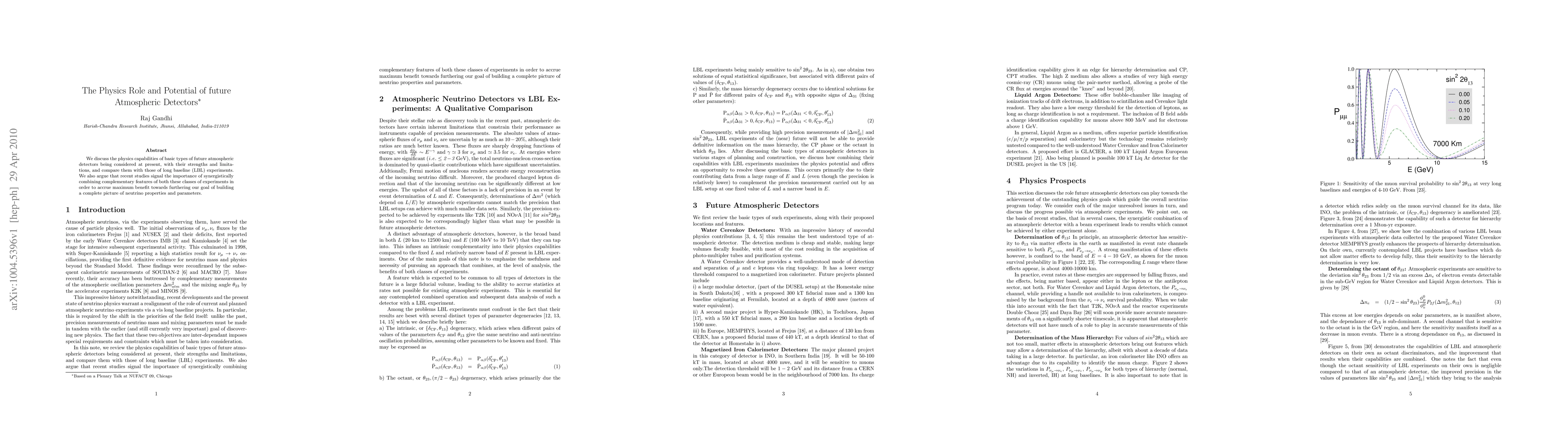 This paper evaluates the potential physics capabilities of future atmospheric detectors, highlighting their strengths and limitations compared to long baseline experiments, and advocates for a synergistic approach combining both types to maximize insights into neutrino properties.