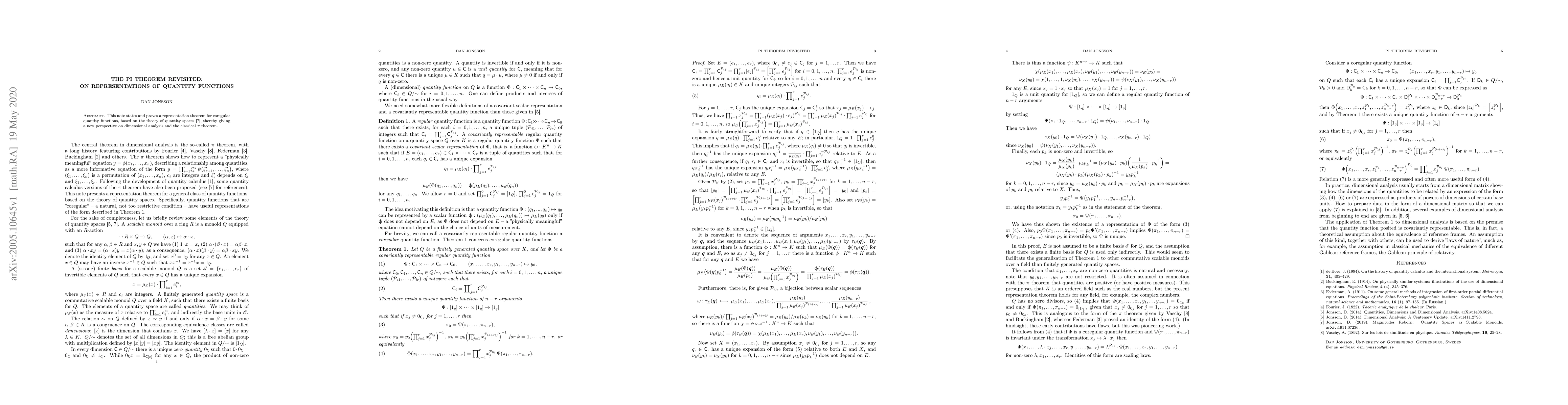A new perspective on dimensional analysis is presented through a representation theorem for regular quantity functions, giving insight into the Pi theorem.