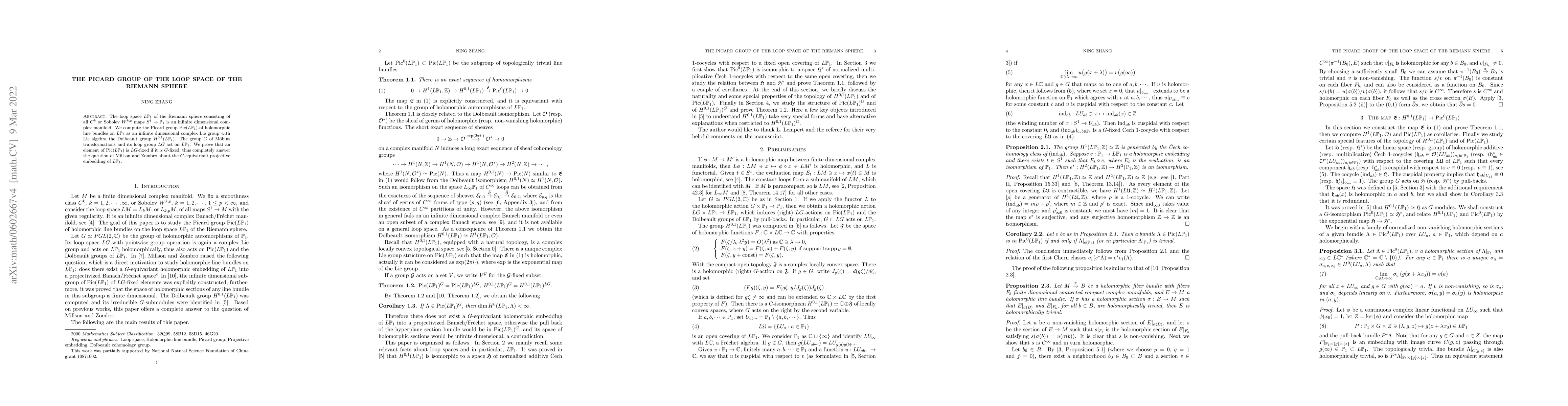 Researchers calculate the Picard group of holomorphic line bundles on the loop space of the Riemann sphere, finding it is an infinite dimensional complex Lie group with a specific Lie algebra, resolving a question about $G$-equivariant projective embedding.