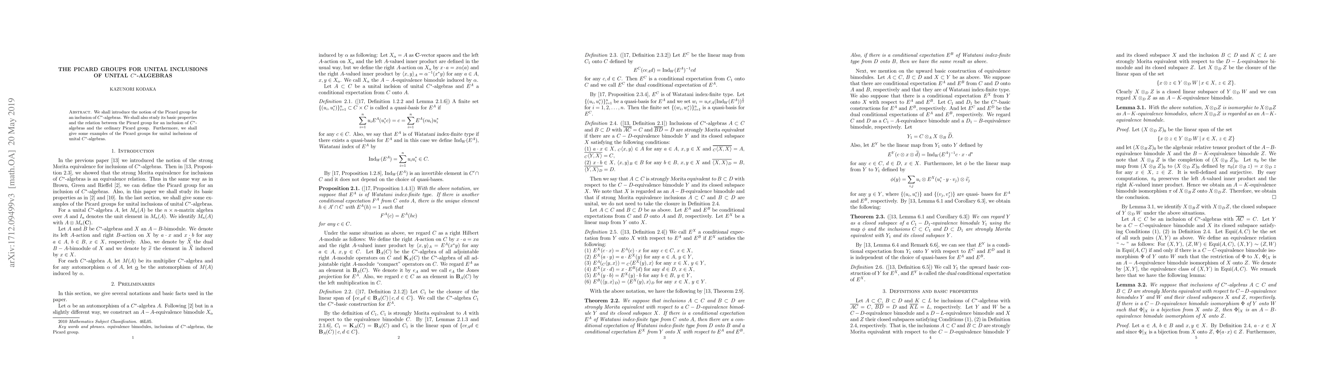 This paper introduces the concept of the Picard group for unital inclusions of $C^*$-algebras, explores its fundamental properties, and discusses its relationship with the traditional Picard group. It also provides illustrative examples of these Picard groups in specific cases.