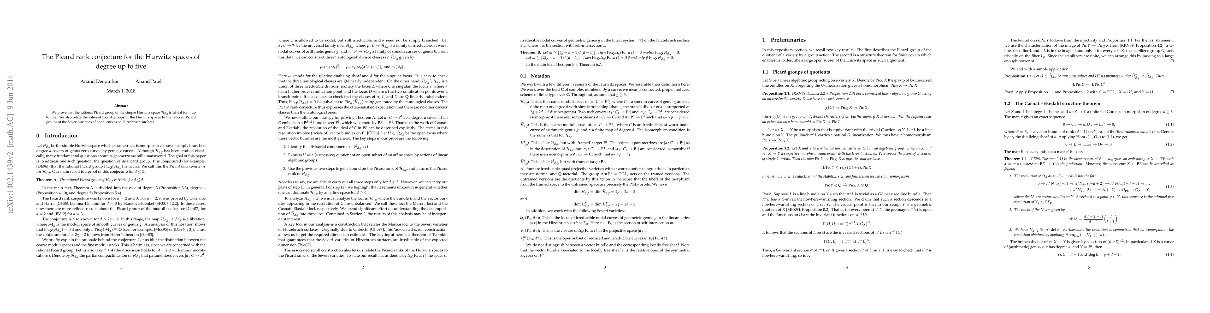 The paper proves that the rational Picard group of simple Hurwitz spaces is trivial for degrees up to five. It also connects the rational Picard groups of Hurwitz spaces to those of Severi varieties of nodal curves on Hirzebruch surfaces.