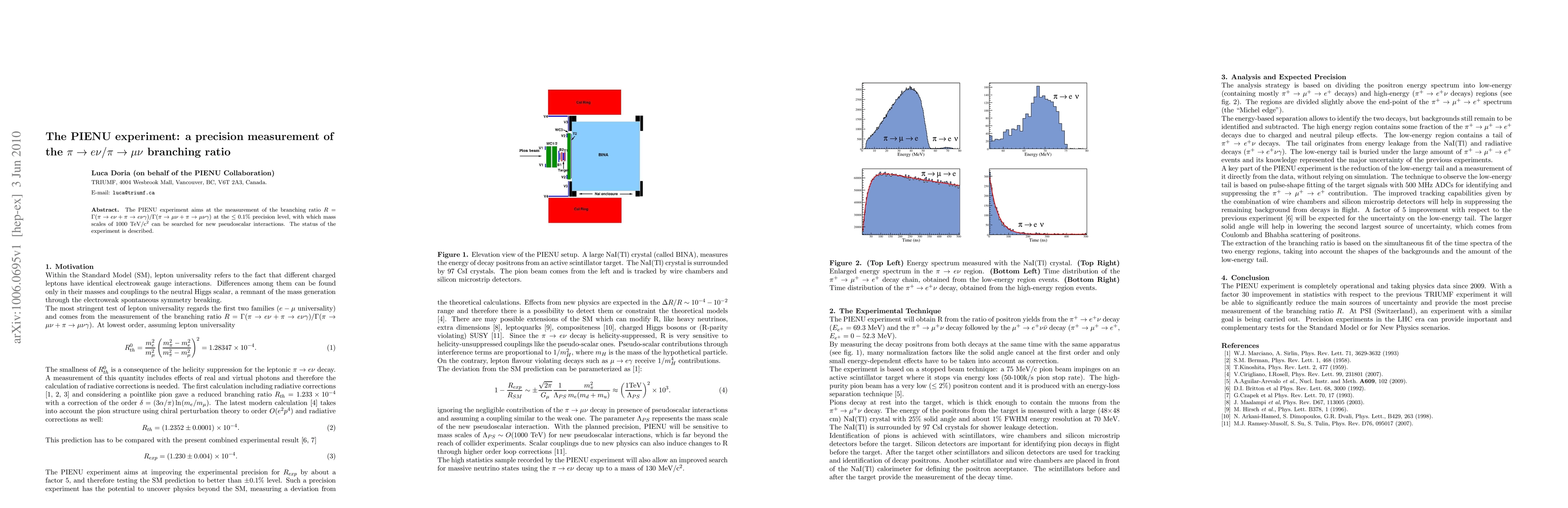 The PIENU experiment seeks to measure the branching ratio R with <0.1% precision to search for new pseudoscalar interactions at mass scales up to 1000 TeV/c². The current status and progress of the experiment are detailed.