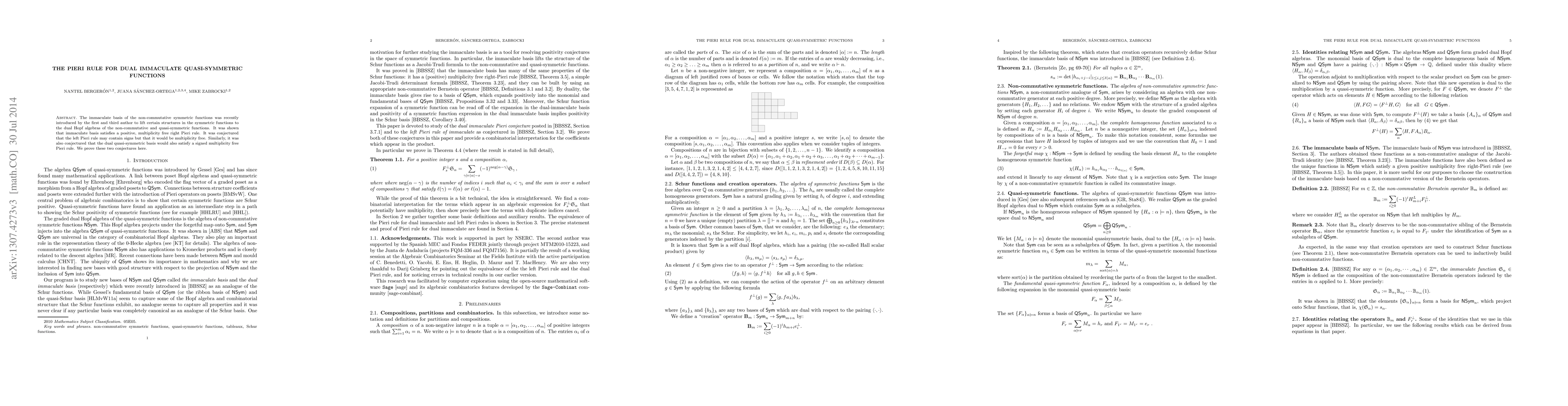 The immaculate basis of the non-commutative symmetric functions was recently introduced by the first and third author to lift certain structures in the symmetric functions to the dual Hopf algebras of the non-commutative and quasi-symmetric functions. It was shown that immaculate basis satisfies a positive, multiplicity free right Pieri rule. It was conjectured that the left Pieri rule may contain signs but that it would be multiplicity free. Similarly, it was also conjectured that the dual quasi-symmetric basis would also satisfy a signed multiplicity free Pieri rule. We prove these two conjectures here.