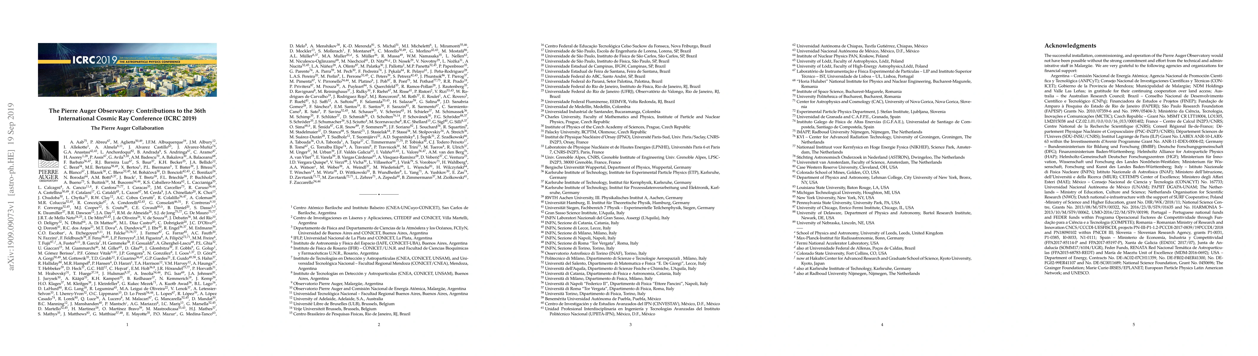 The Pierre Auger Observatory presented significant findings on ultra-high-energy cosmic rays at the 36th International Cosmic Ray Conference (ICRC 2019), highlighting advancements in detecting and analyzing cosmic ray events. These contributions furthered understanding of cosmic ray origins and their interactions with Earth's atmosphere.