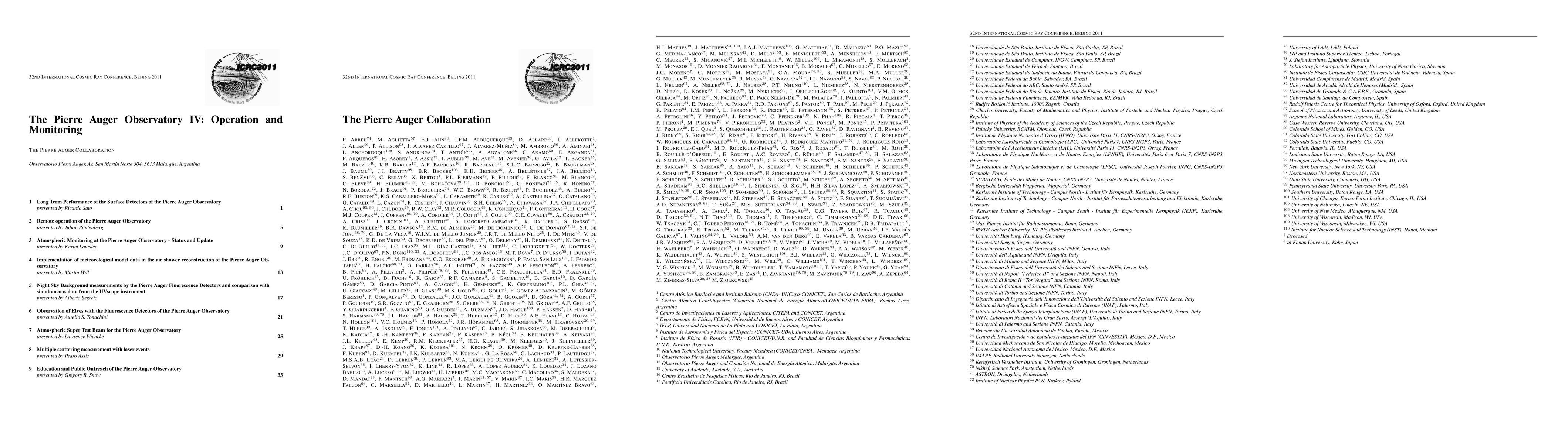 Summary: This paper provides detailed technical reports on the operation and monitoring of the Pierre Auger Observatory, focusing on the methods and technologies used to detect and analyze ultra-high-energy cosmic rays. It outlines the observatory's performance and maintenance strategies.